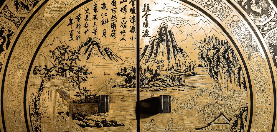 Династия - Мин В Китайской культуре черный цвет считается цветом неба и символизирует таинственность, мистику и темноту. Двери украшает латунная накладка с изображением 12 знаков зодиака. Такой шкаф стоял в кабинете ученого мужа, где он хранил свитки, множество книг и других важных документов. Ручная работа по металлу
