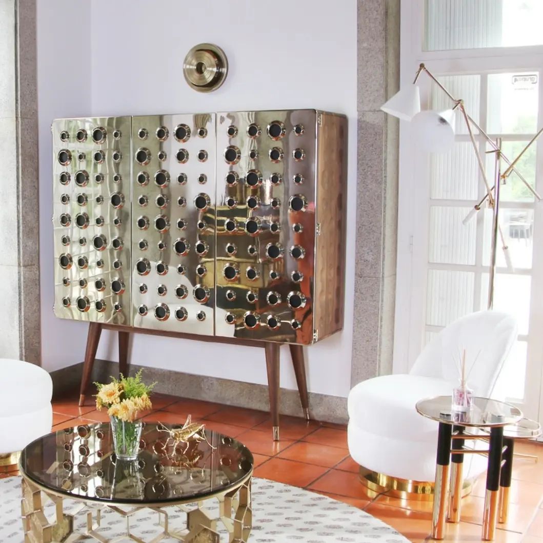 Яркие и стильные – тумба/комод под ТВ, изящный туалетный столик и очаровательный бар! Линейка роскошной мебели, в которой угадывается отсылка к знаменитой «бондиане». Отличный выбор для современного и статусного интерьера.