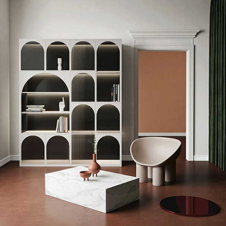 Роскошный универсальный шкаф (стеллаж, книжный шкаф), с великолепным «арочным» фасадом. Массив дерева, рифленое стекло. Экологичная краска. Размеры на фото. Три базовых цвета – белый, черный, зеленый; другие цвета на заказ, по индивидуальному запросу.