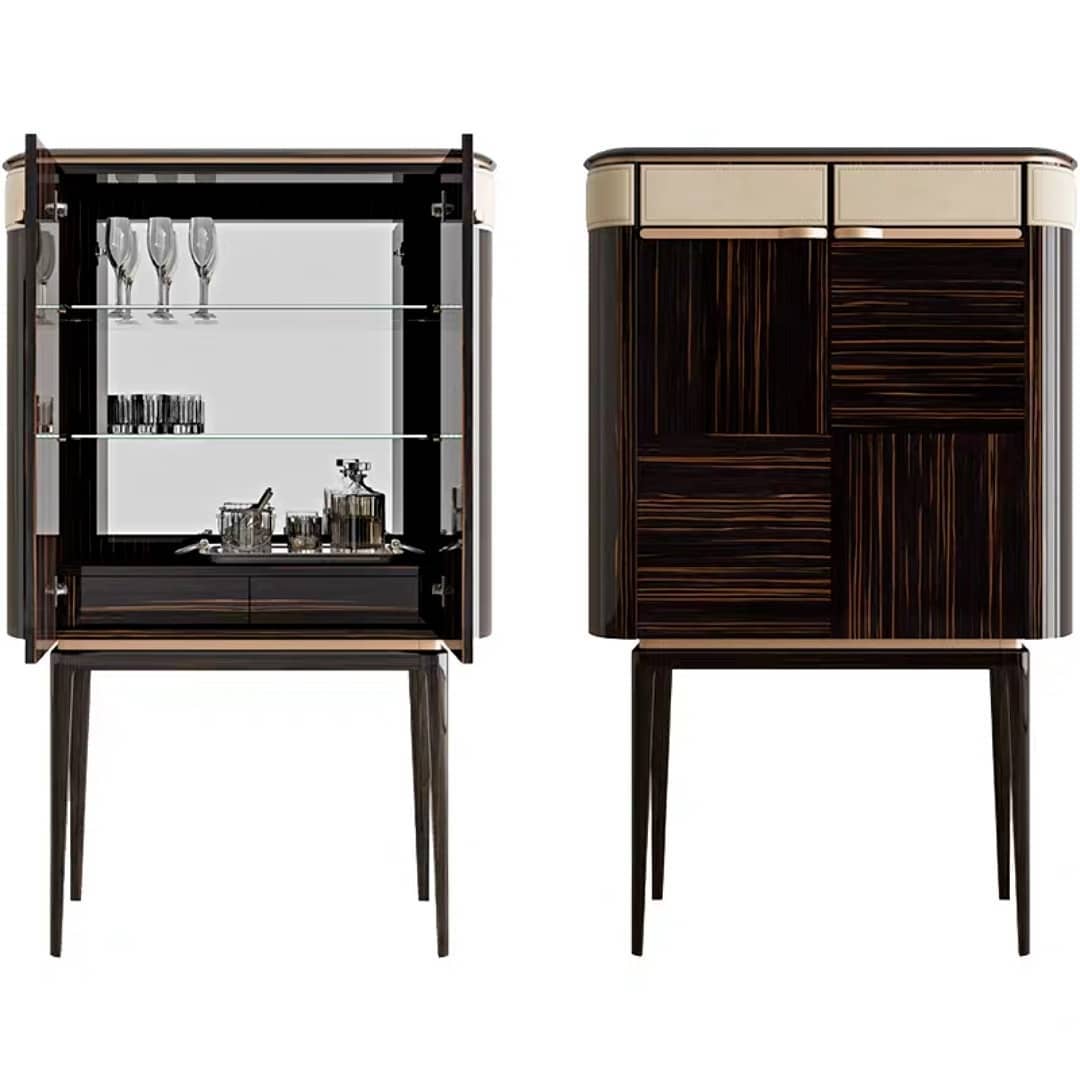 Достойный хранитель благородных напитков и выверенная красота в вашем интерьере. Каркас из массива бука, шпон ценнейшего эбенового дерева, кожа, высококачественная нержавеющая сталь, с гальваническим покрытием. Два варианта цвета – на фото. Размеры, тоже на фото, но можете заказать свои, индивидуально.