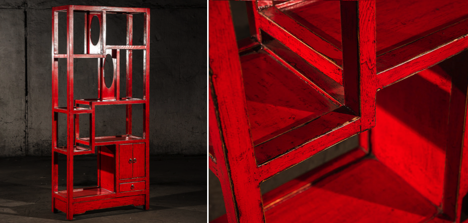 Красный китайский стеллаж countless treasures