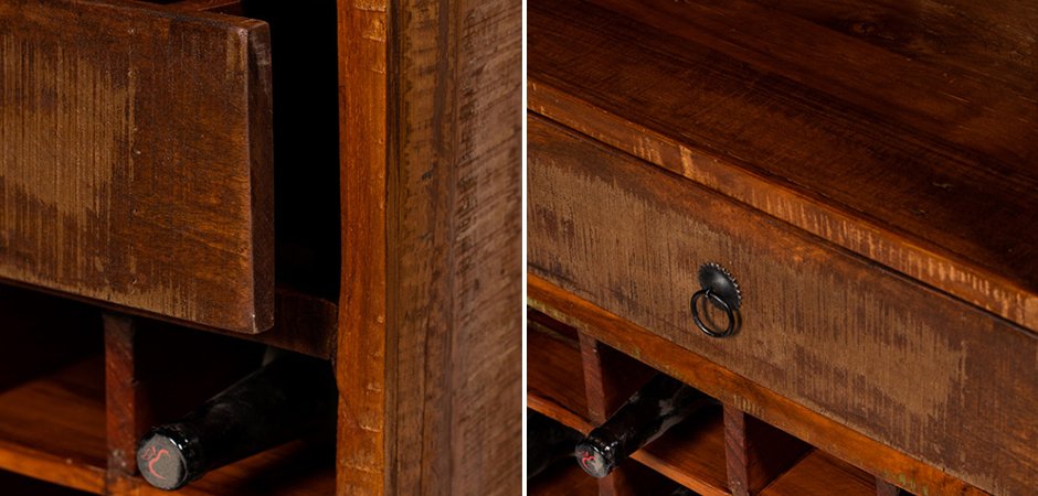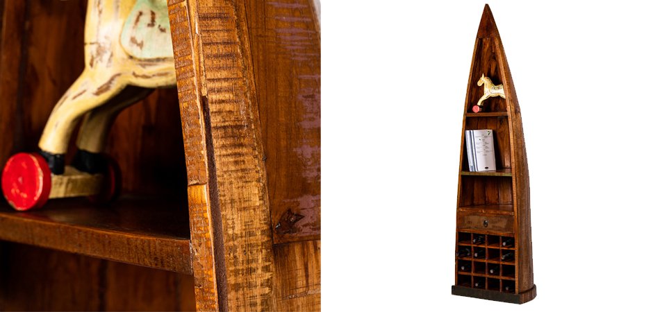 Стеллаж изготовлен из антикварной древесины манго и тропической акации.