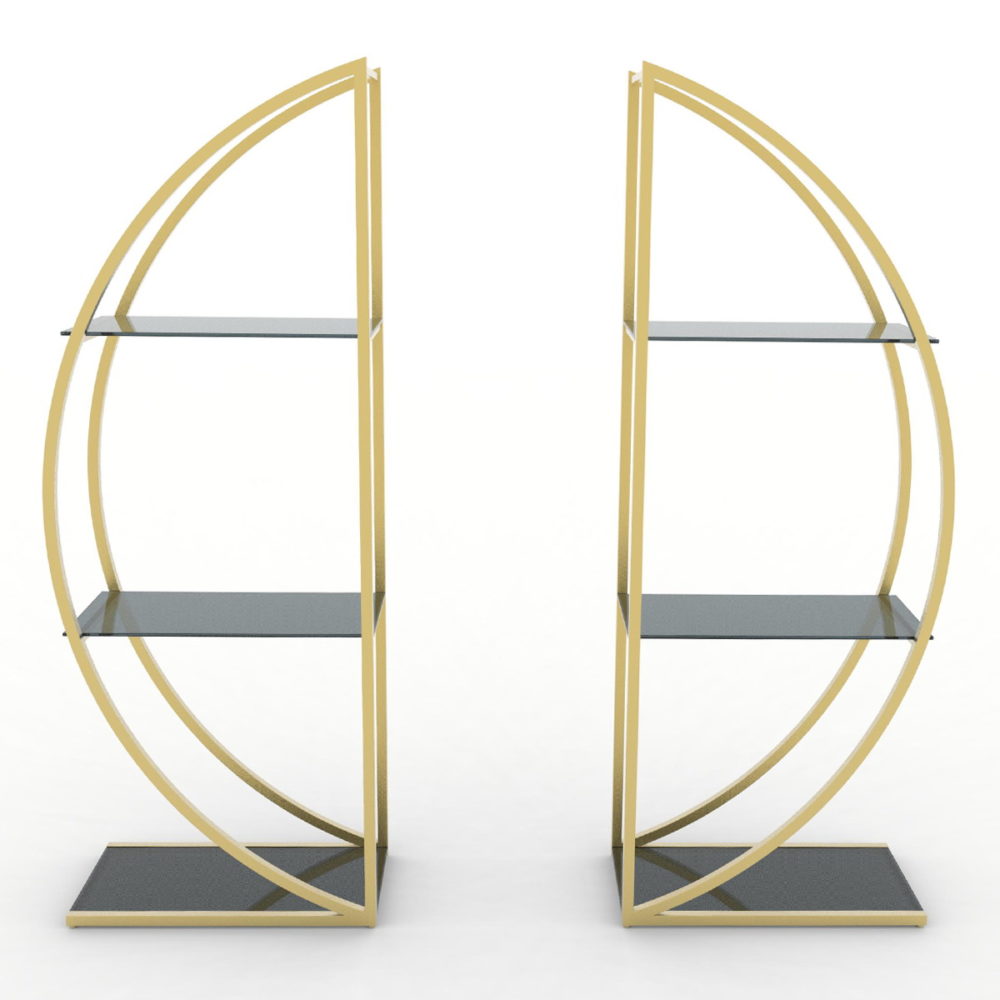 Стеллаж: металлическая конструкция с декоративным покрытием под латунь (возможны цвета: под золото, хром, медь, бронза, черный муар)