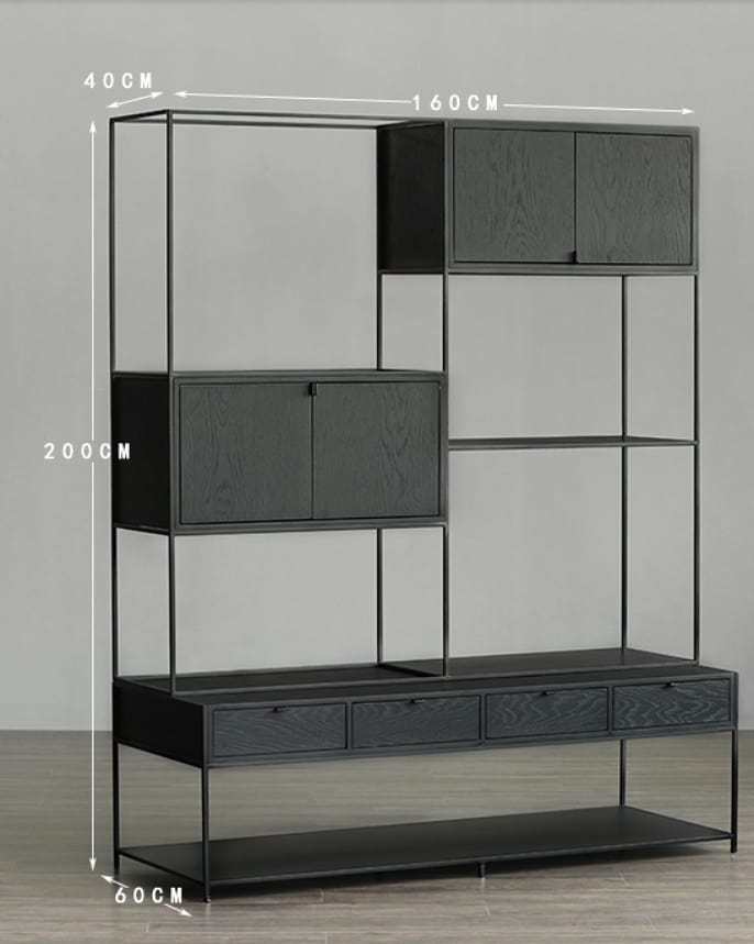 Размеры стеллажа – 150х160х40, тумбы – 50х160х60 см.