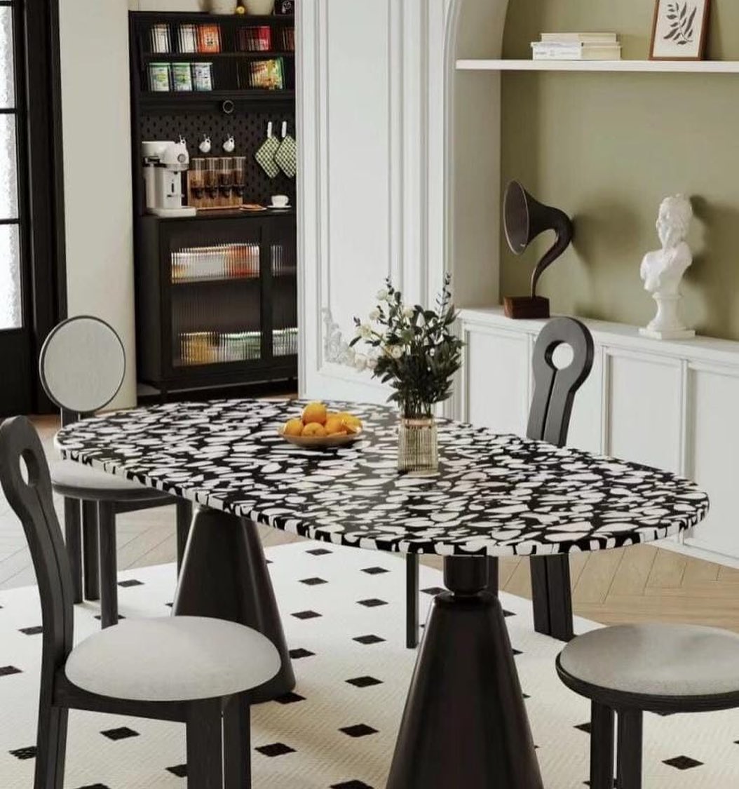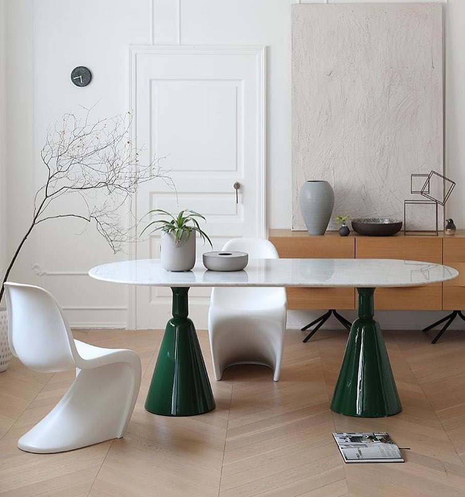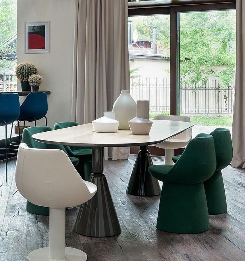 Шикарный обеденный стол Monsterior Shop, с подборкой очаровательных стульчиков, которые идеально к нему подходят. Стильный, современный дизайн. Мдф, столешница шпонированная или из натурального мрамора, на выбор.