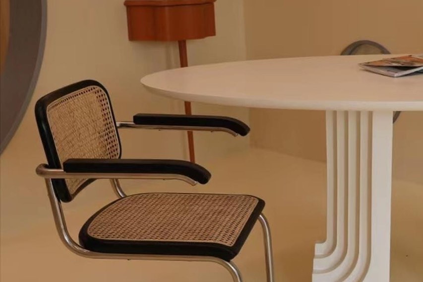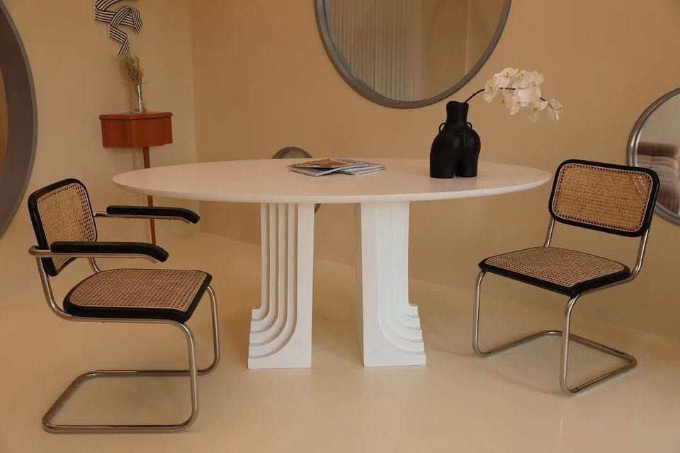 Очаровательные стульчики с сеточкой из ротанга и роскошный обеденный стол Monsterior Shop! Стильное и элегантное решение для современного, статусного интерьера. Стулья – ротанг, кожа, нержавеющая сталь со специальным покрытием. Стол – мдф или мдф+мрамор.