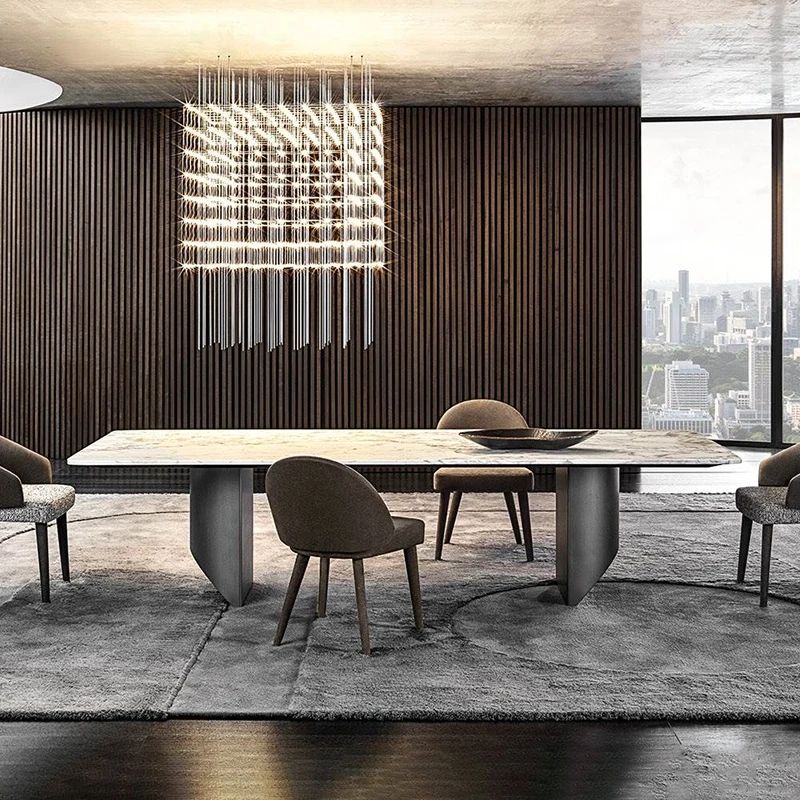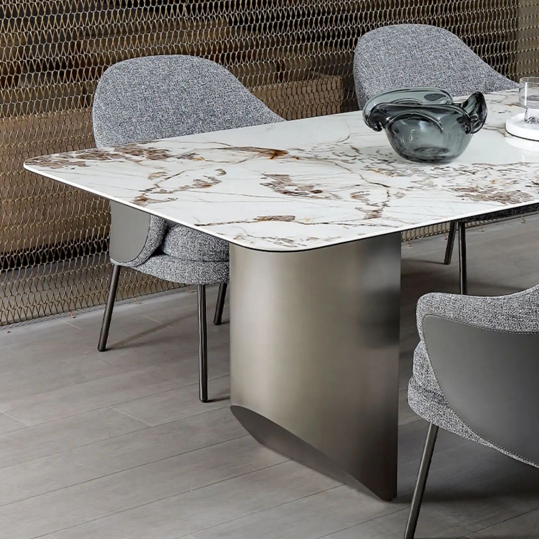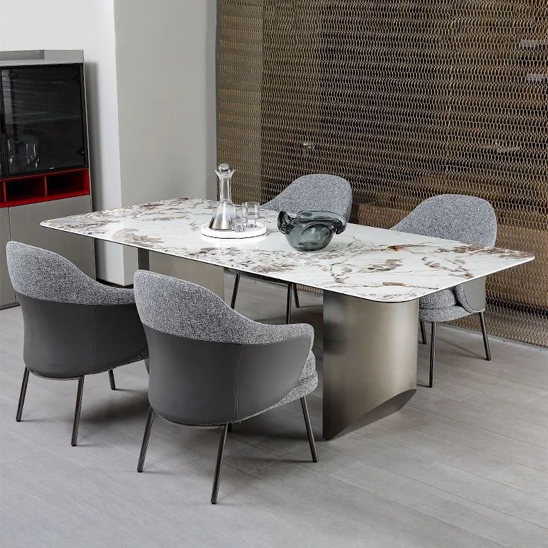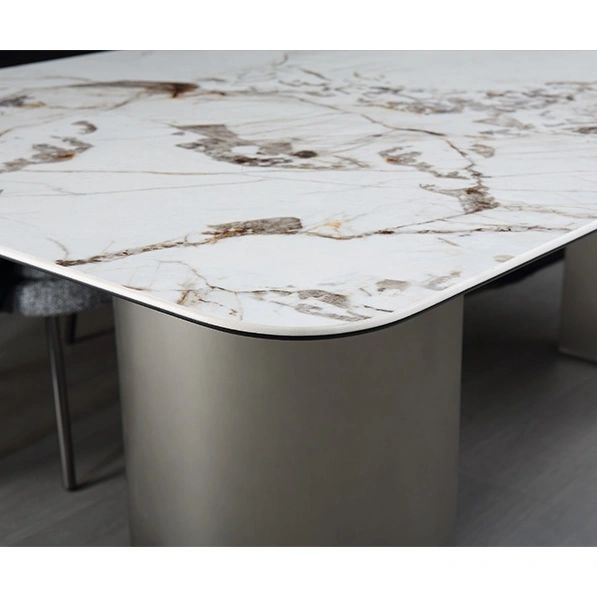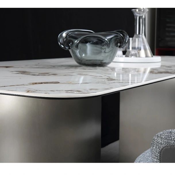 Шикарный обеденный стол со столешницей из спеченного камня – материала, который практически не подвержен внешнему воздействию. Именно поэтому такие столики считаются «вечными». Добавьте к этому прекрасный, благородный дизайн, представьте этот бесподобный стол в своем интерьере