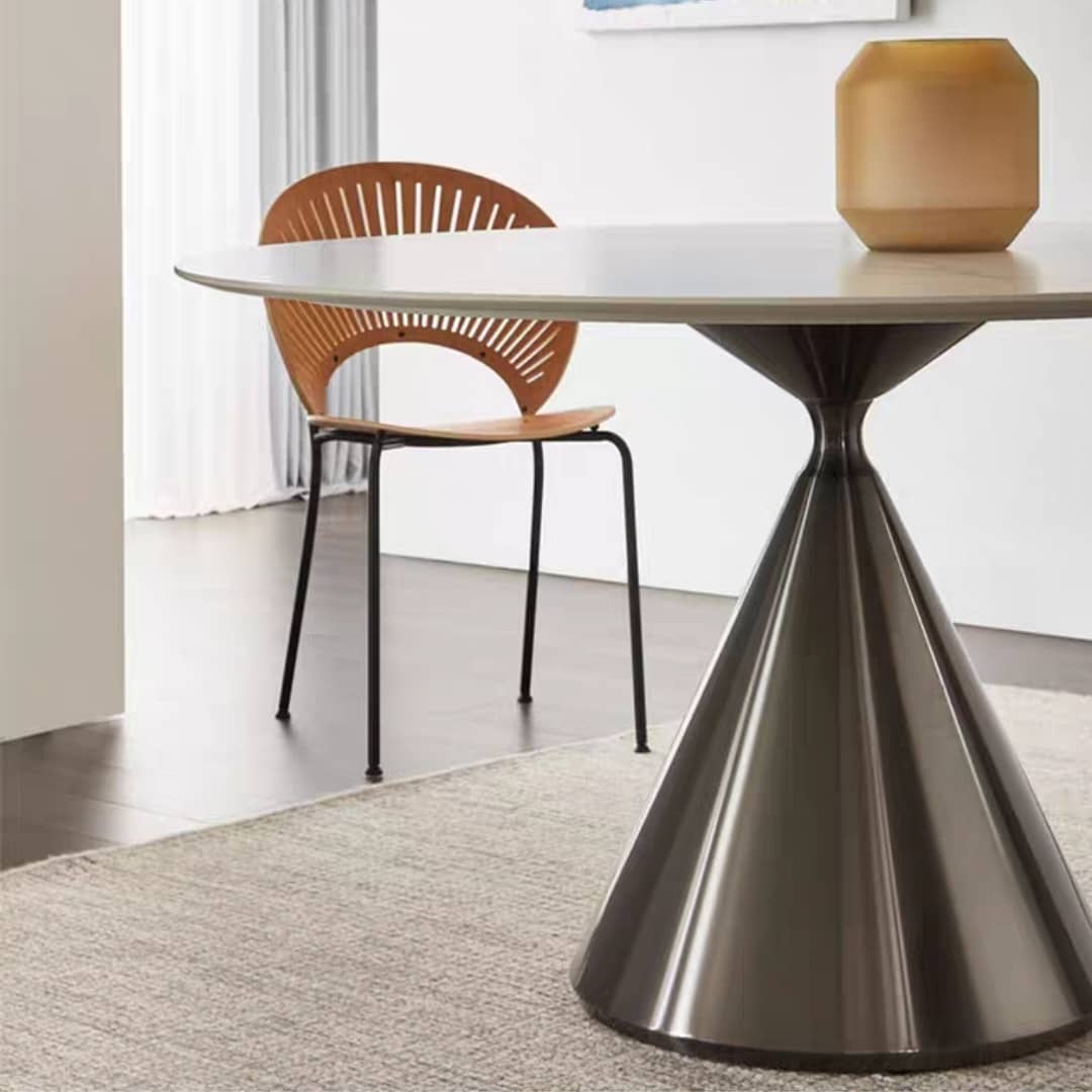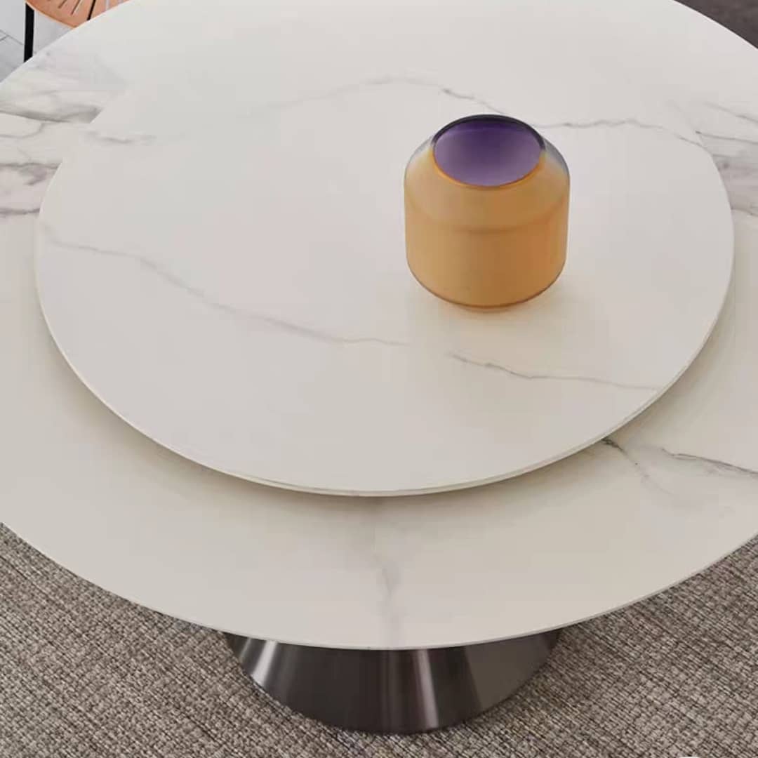 Среди обеденных столов есть свои флагманы! И сегодня – флагманский стол с супер-твердой столешницей из спеченного камня – современного, очень практичного и красивого материала. Благодаря ему толщина столешниц сводится до минимума! Различные цветовые решения подстолья, на выбор – одна или две столешницы, с вращением или без. Роскошное решение для современного солидного интерьера.