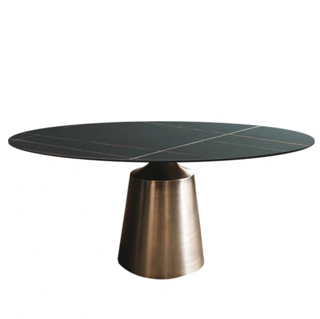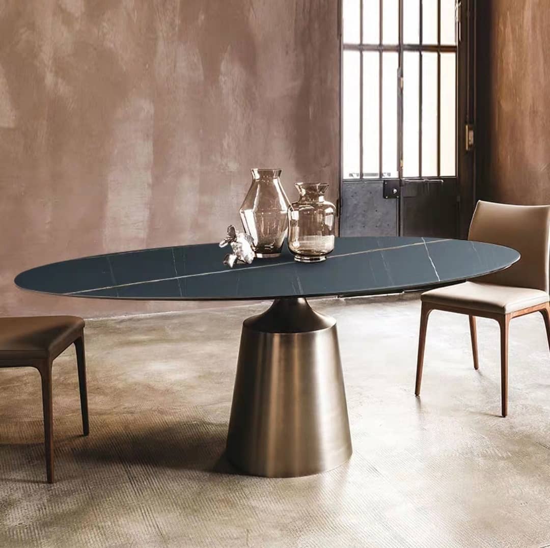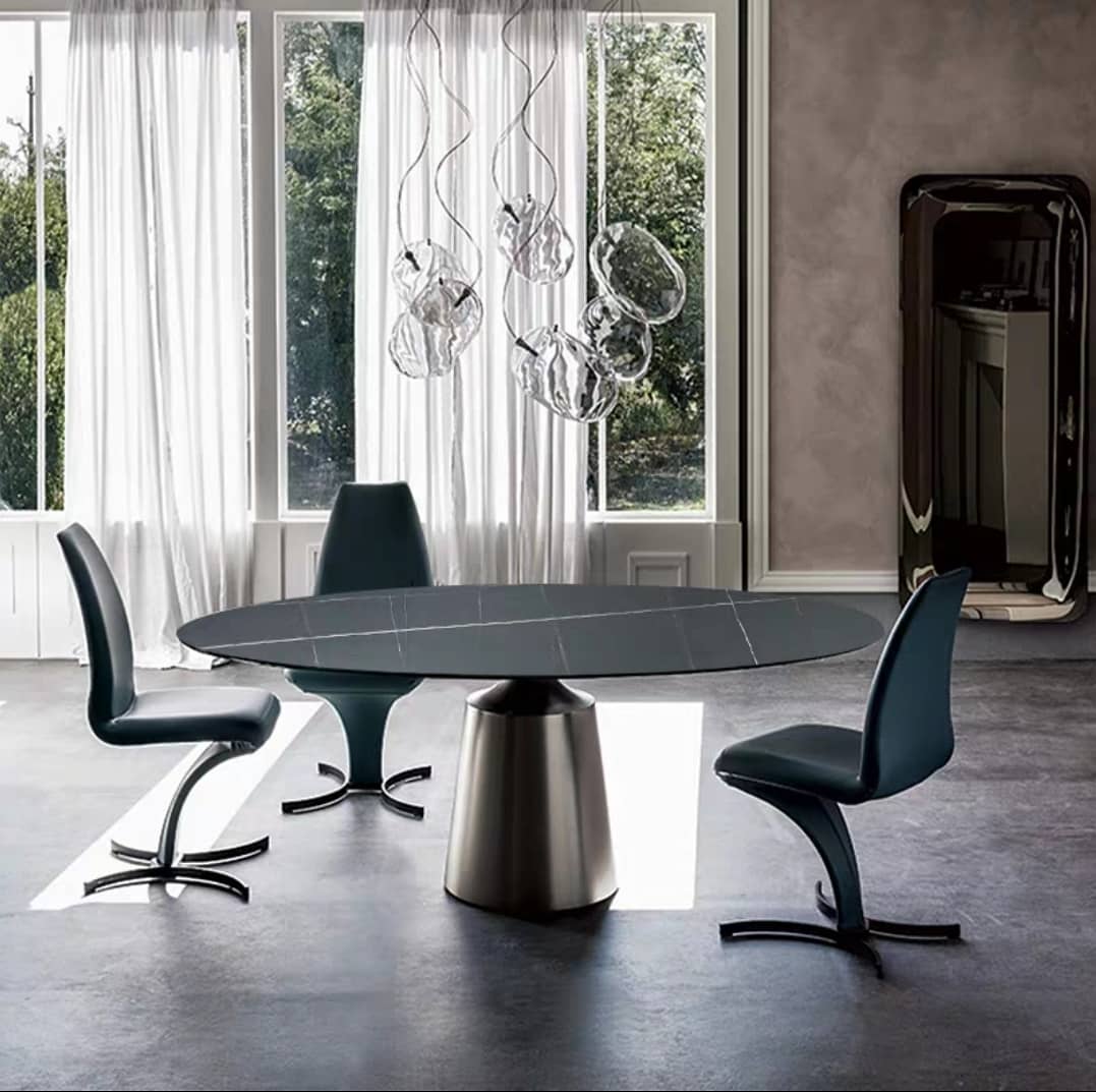 Стол, который мы предлагаем сегодня, имеет прекрасную овальную столешницу, и великолепное, богатое подстолье из нержавеющей стали, со специальным покрытием.