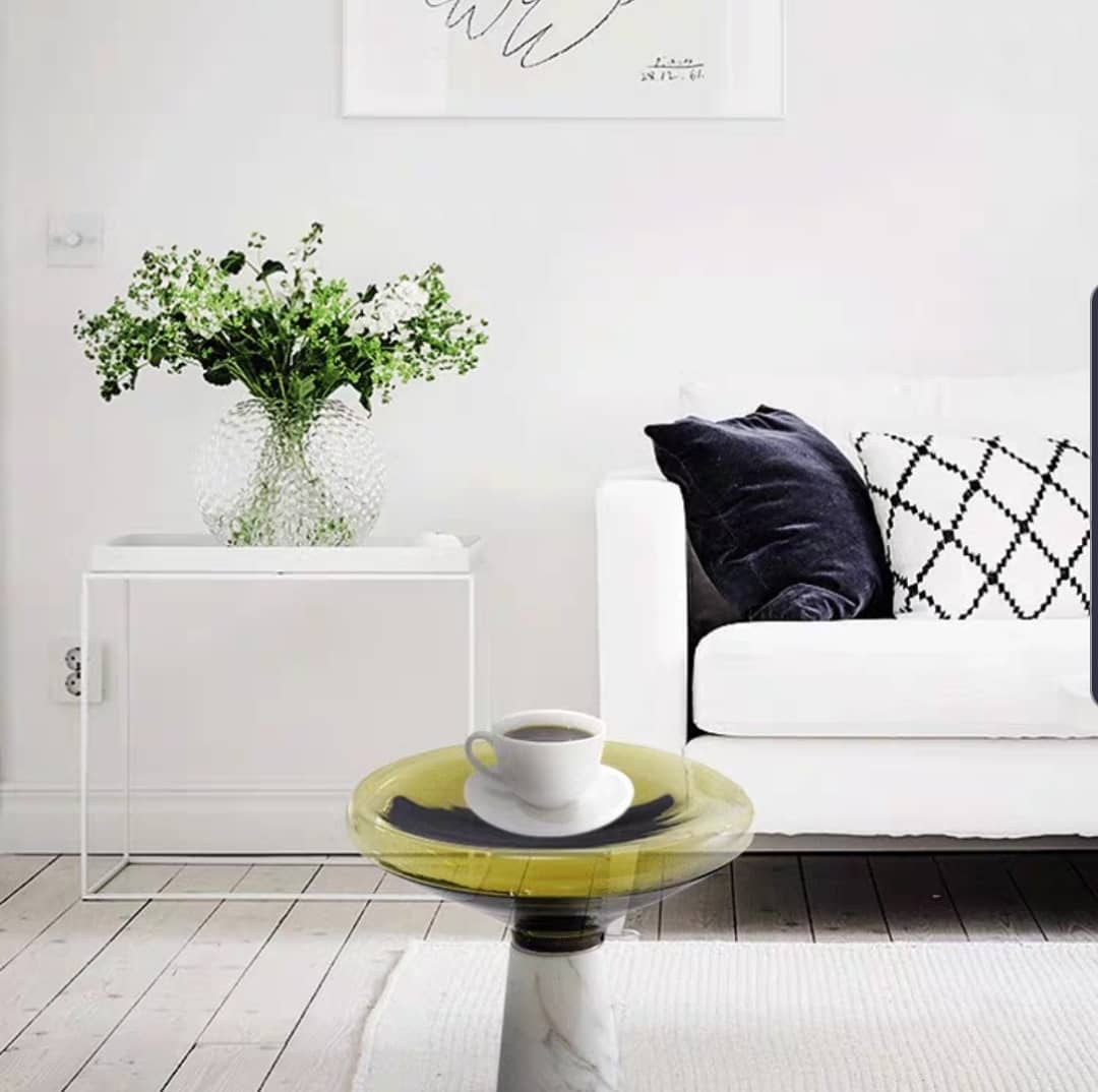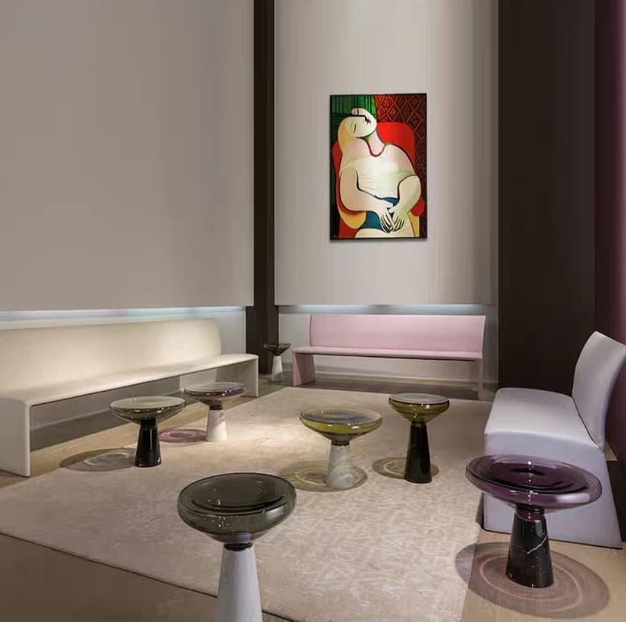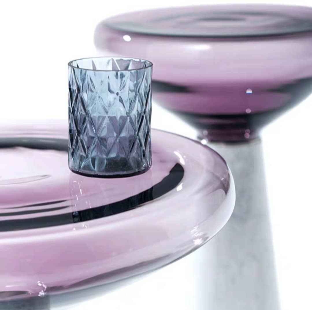Мраморное основание и потрясающе-красивая столешница из стекла. Ручная работа.
