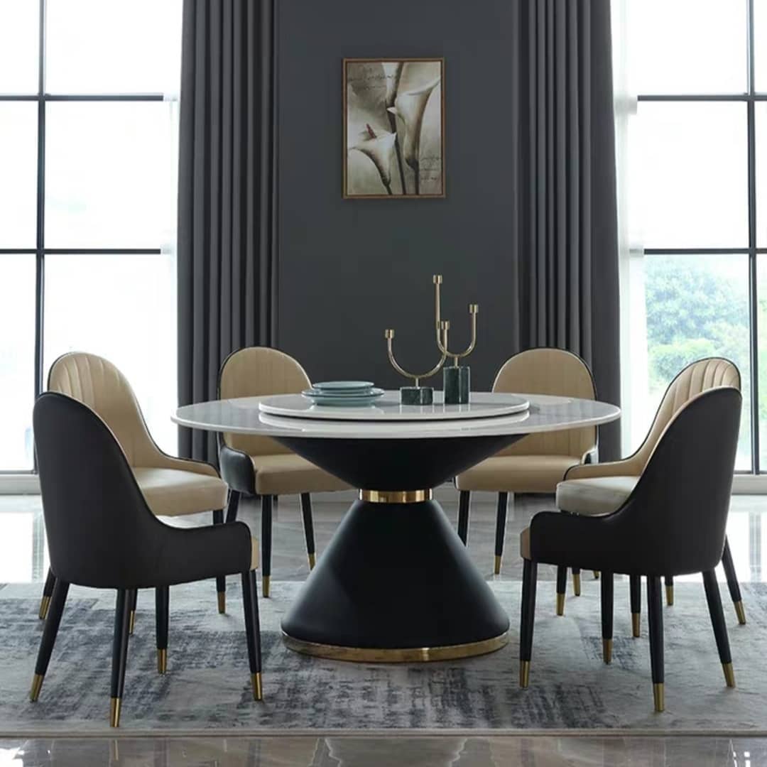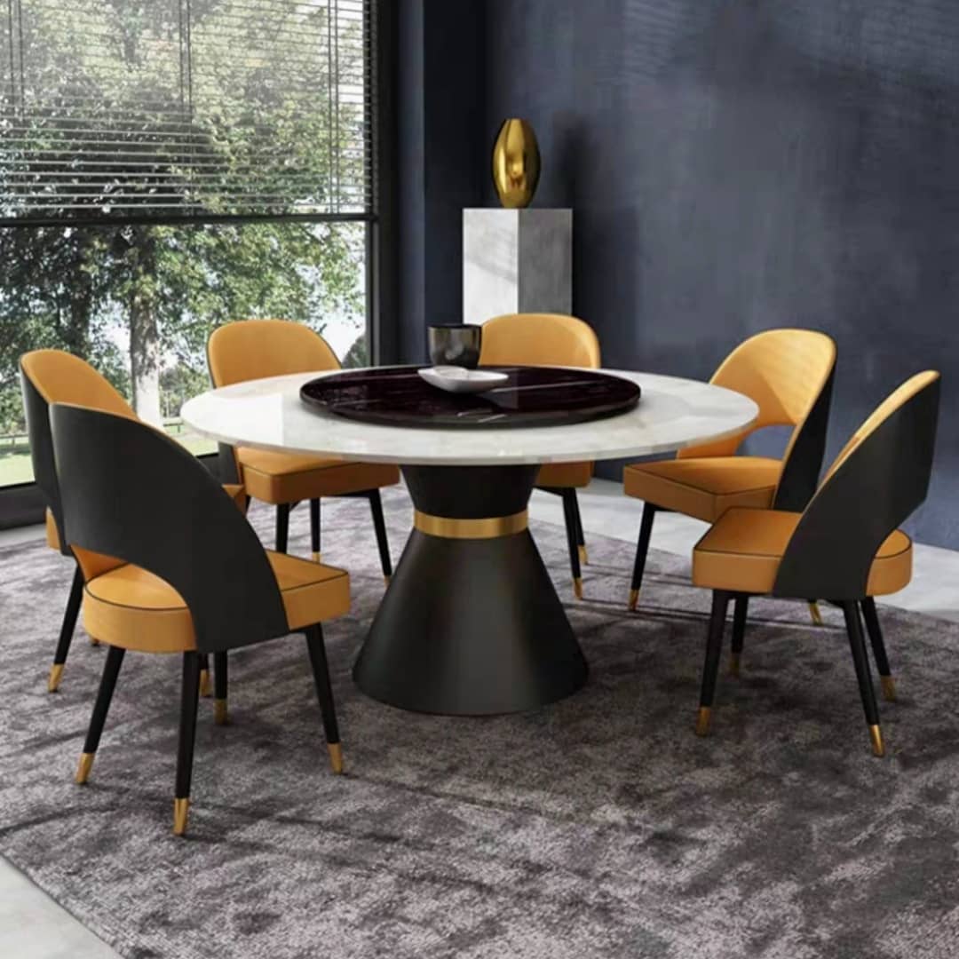 Роскошные обеденные столы с полированной мраморной столешницей.