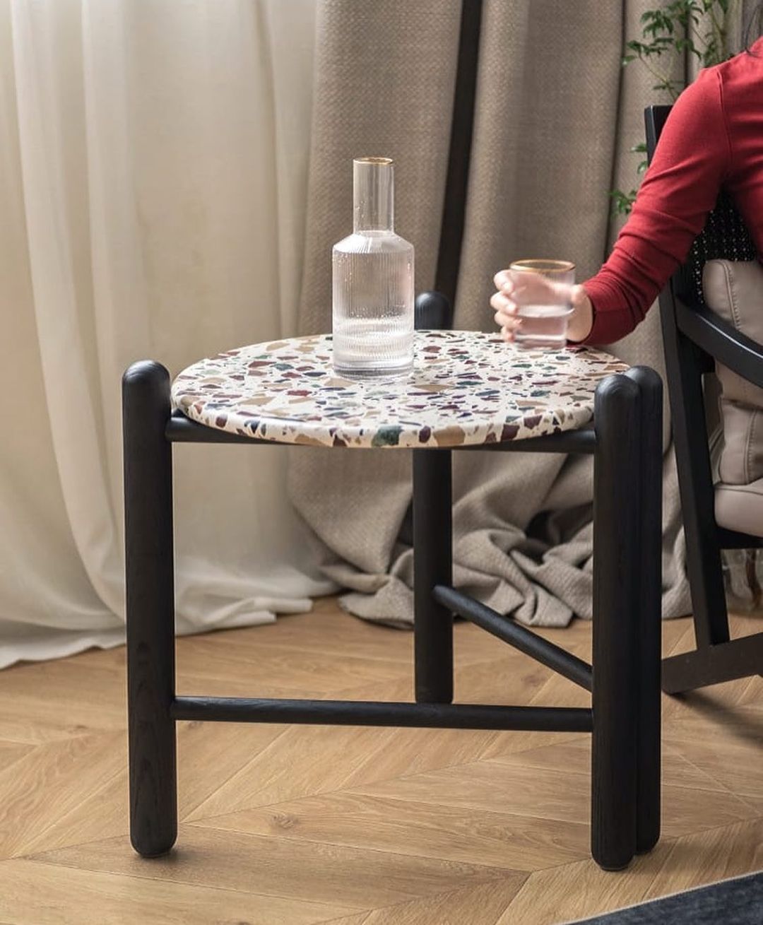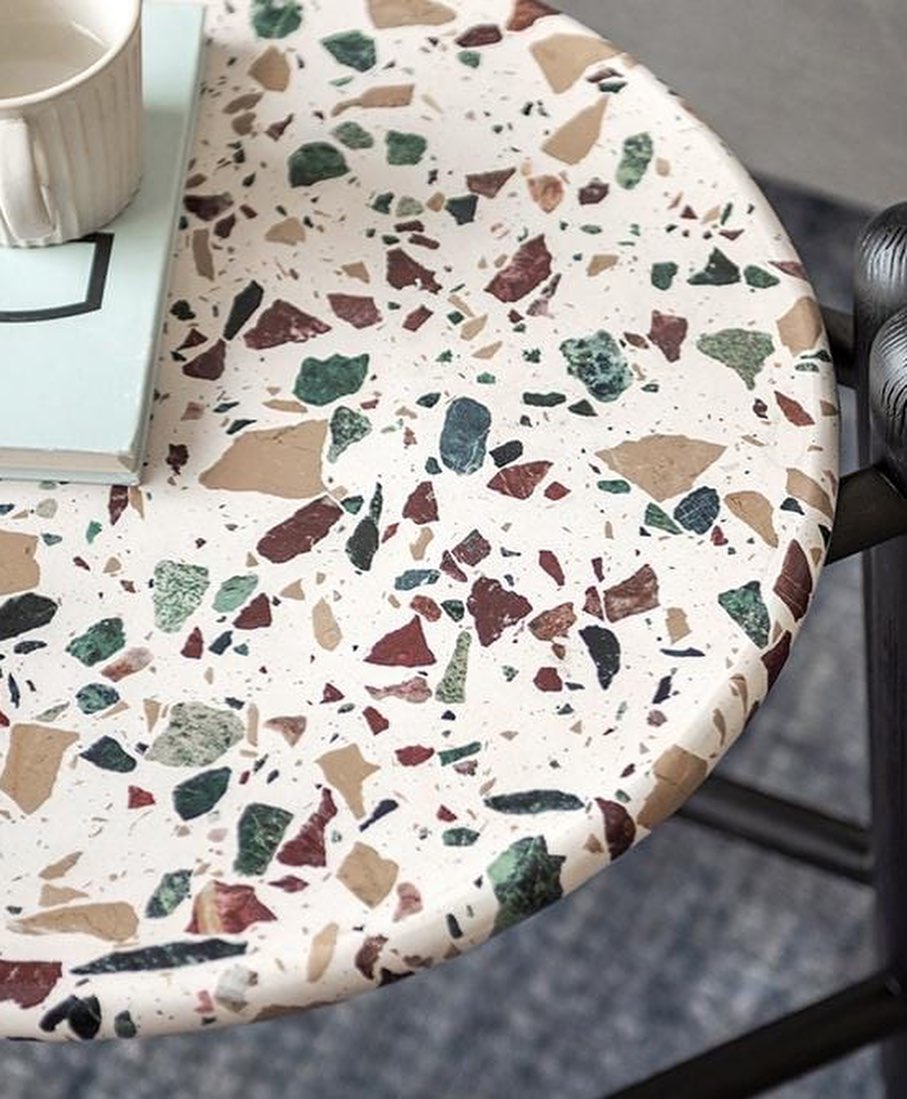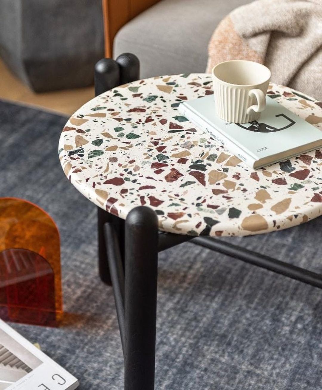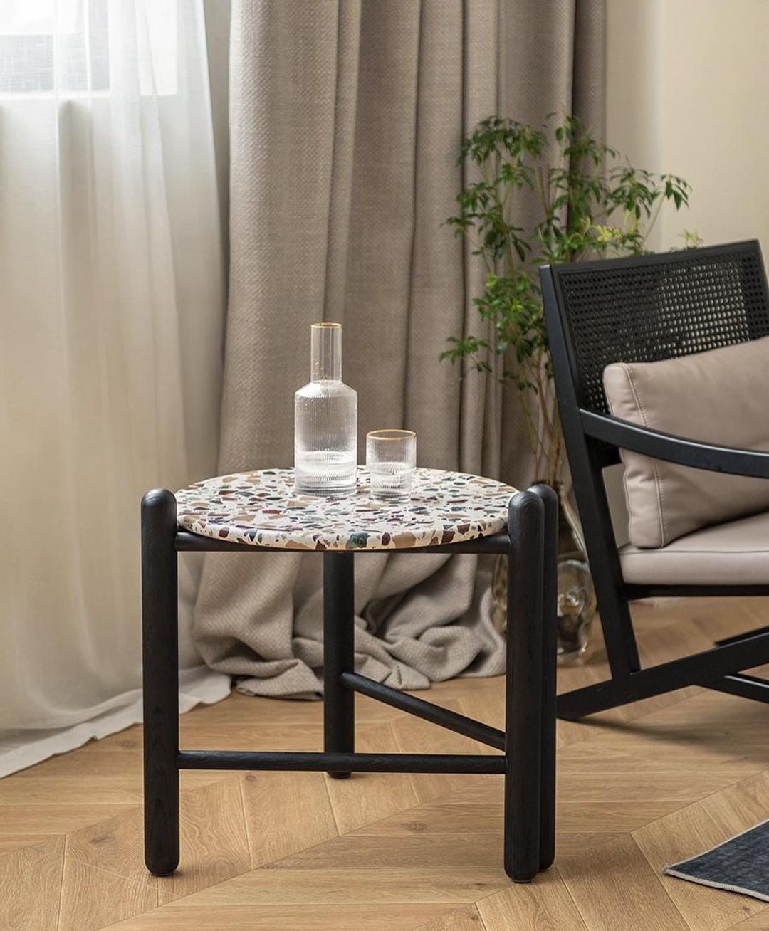 Дизайнерский приставной столик Monsterior Gems со столешницей из очаровательного терраццо. Роскошный выбор для современной гостиной или спальни. Стильная и комфортная красота вашего личного пространства!
