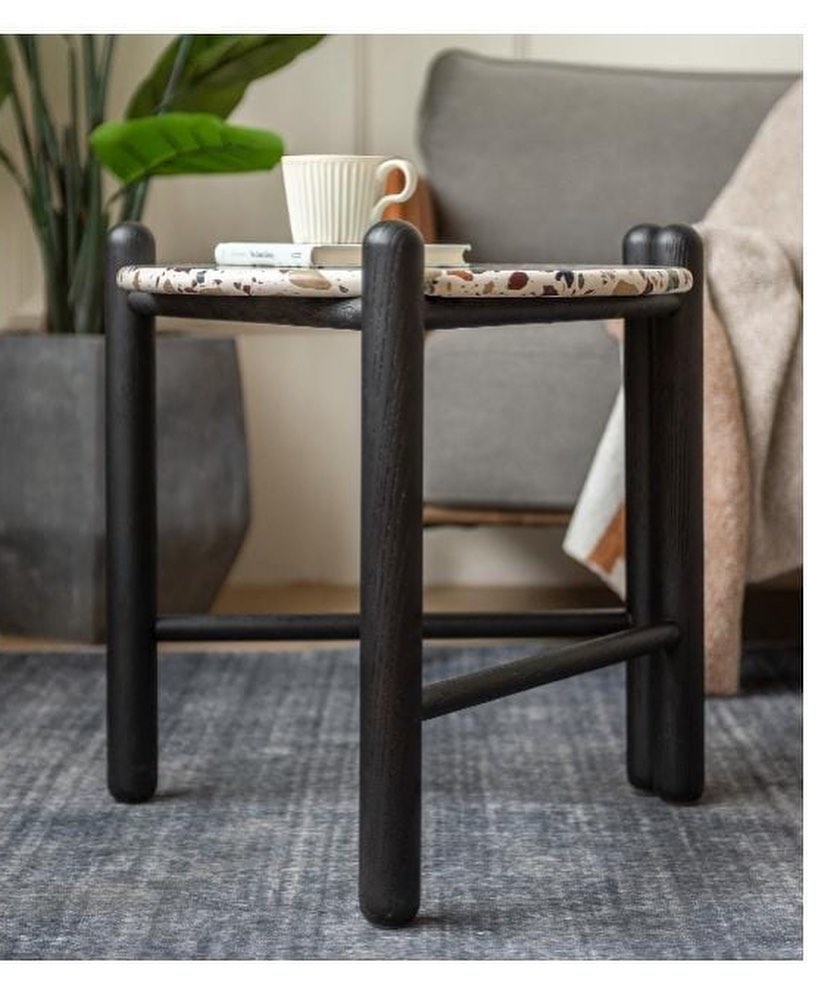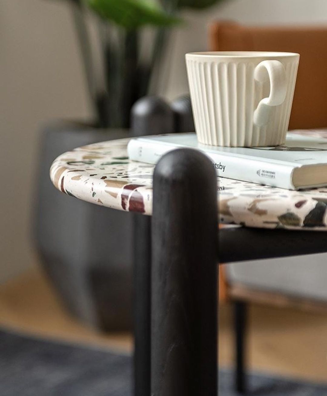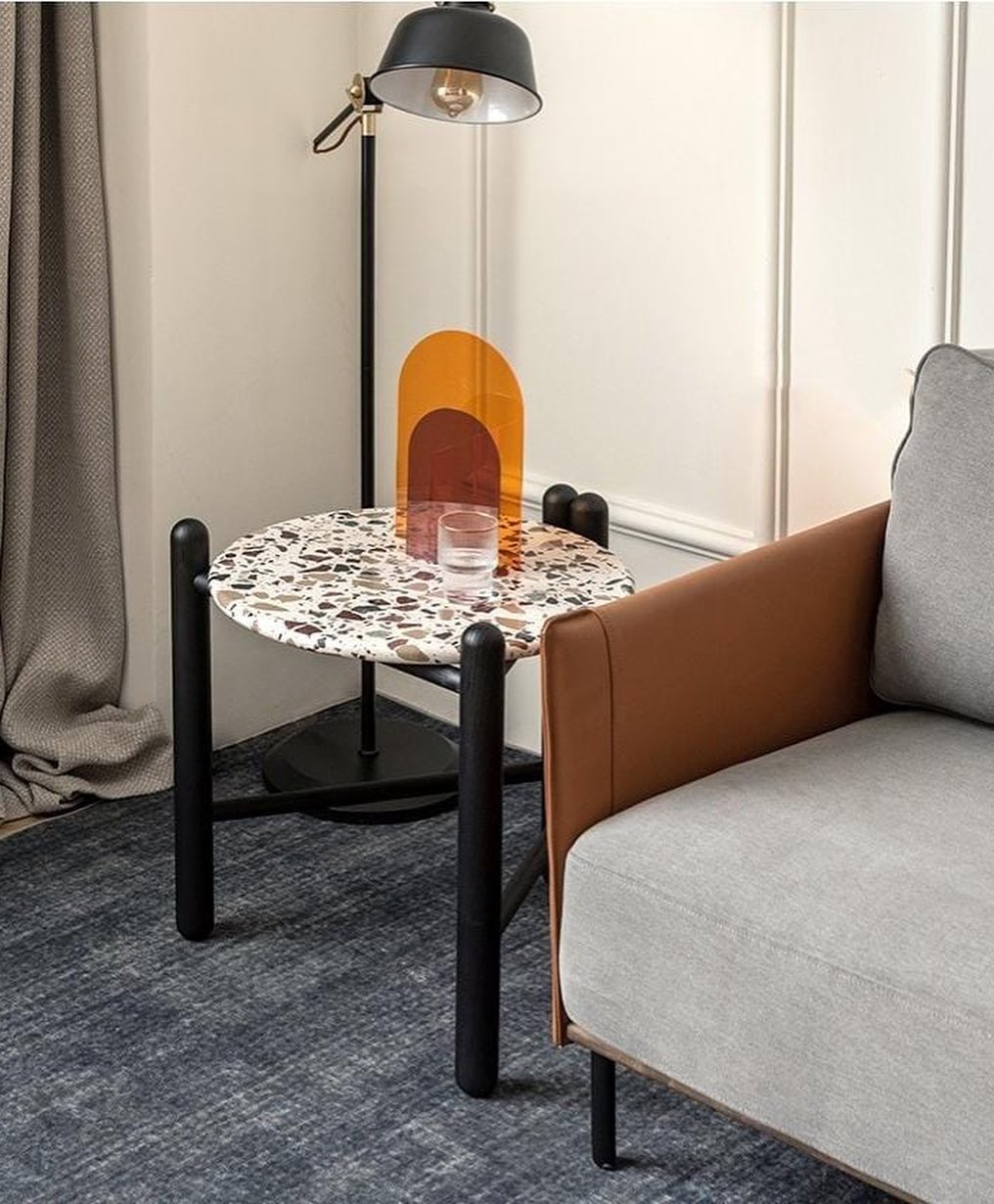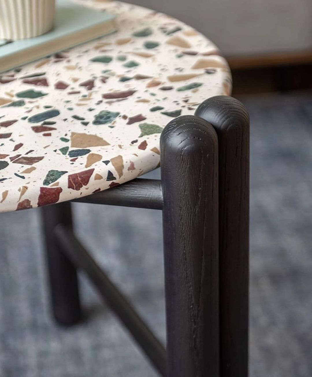 Дизайнерский приставной столик Monsterior Gems со столешницей из очаровательного терраццо. Роскошный выбор для современной гостиной или спальни. Стильная и комфортная красота вашего личного пространства!