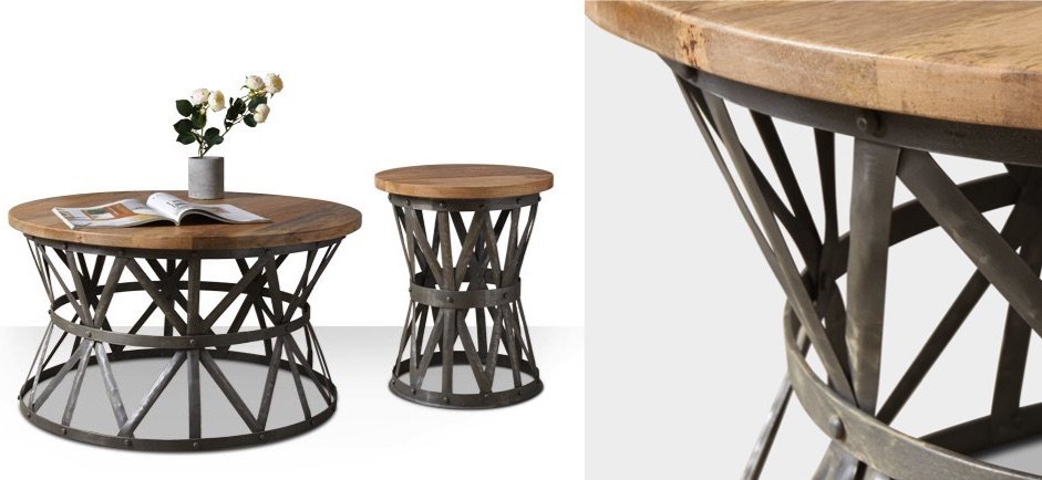 Несмотря на брутальный характер компактный журнальный стол Industrial Rust Barrel 40 Table отличается стилем и изящностью. Для создания этой модели дизайнеры объединили холод стали и тепло дерева. Столешница выполнена из массива дуба, благородного материала цвета зрелого зерна. В основании стола – множество прямых линий, которые пересекаясь, образуют остроугольные треугольники. Этот «рисунок» может дополнить уже имеющийся в интерьере мотив углов или, наоборот, добавить «мягкому» интерьеру страстности.