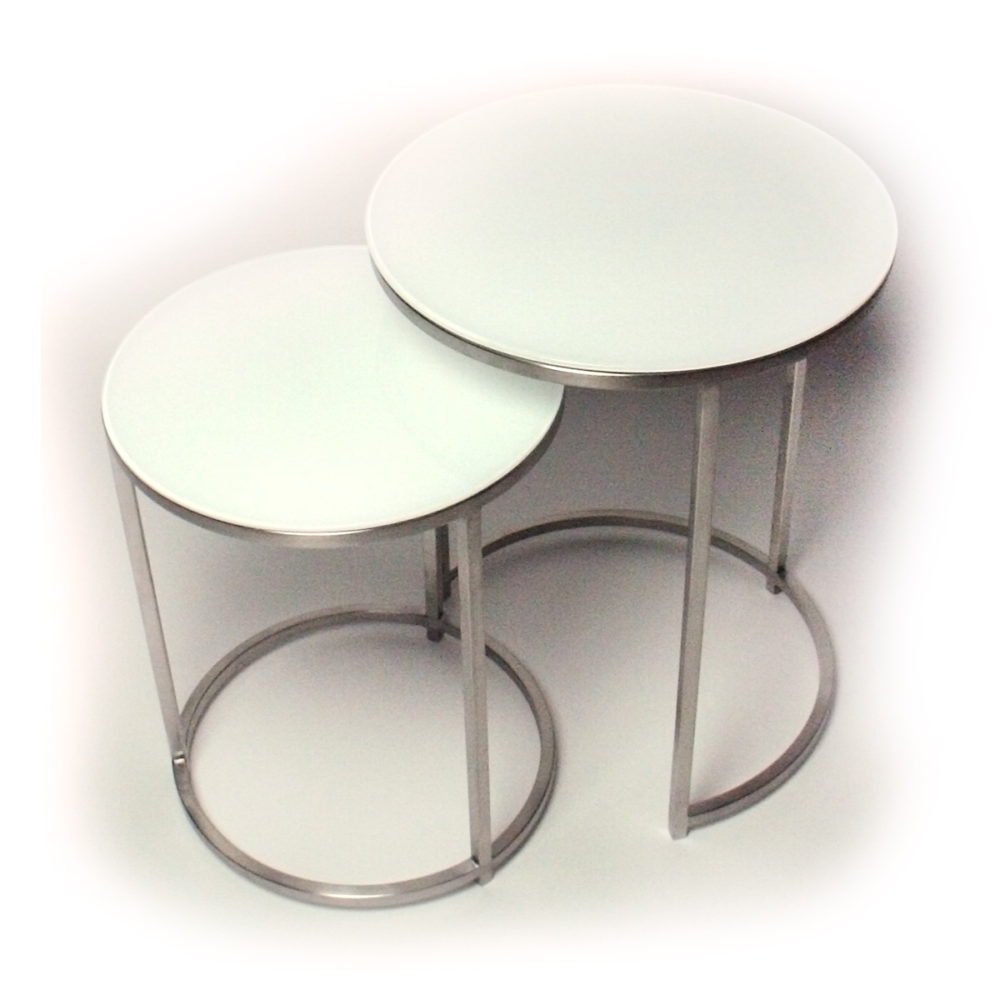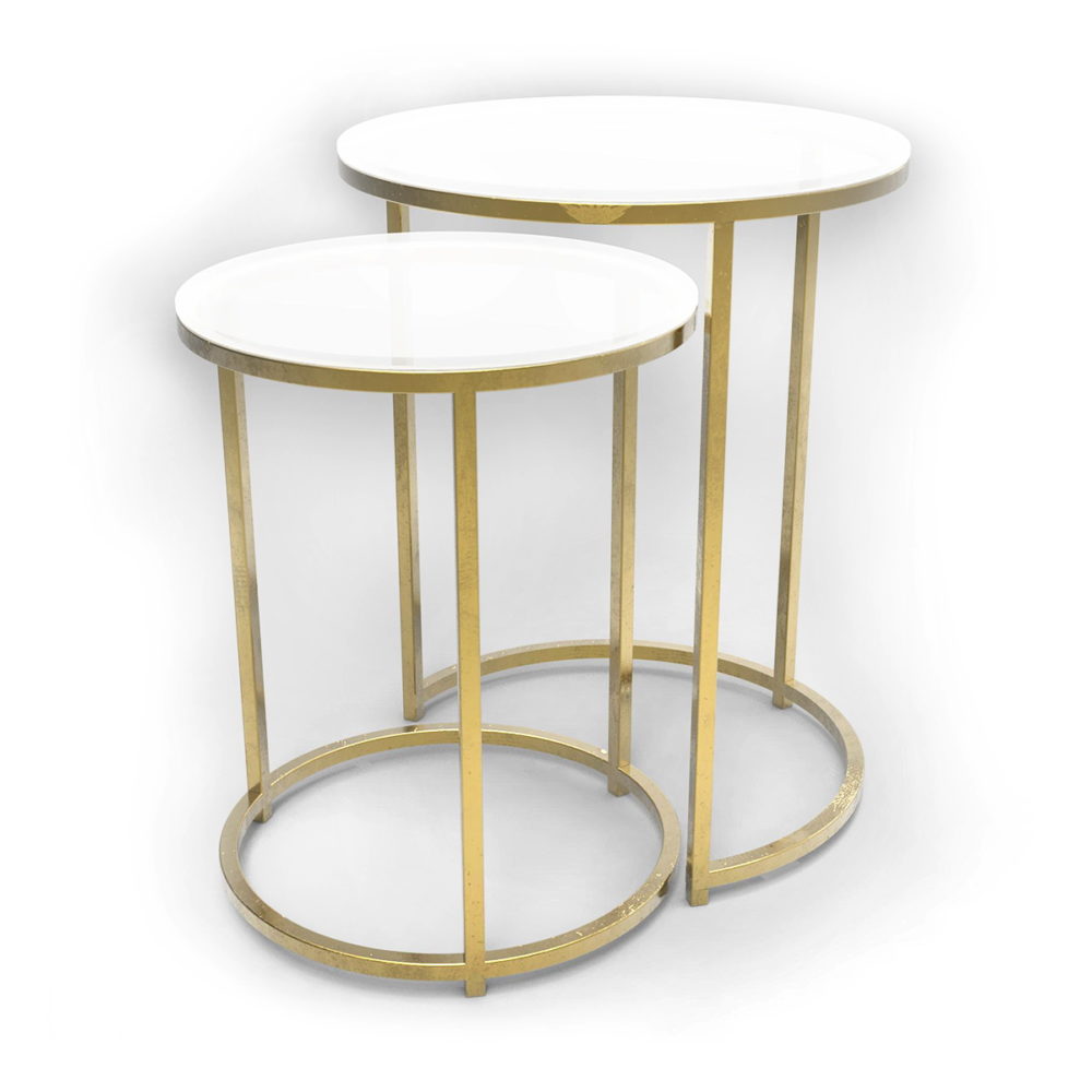 Приставные столики ДАБЛ — идеальное функциональное и изящное решение для Вашего интерьера. Комплект кофейных столиков разных диаметров гармонично смотрятся и в комплекте, и по-отдельности. Один убирается под другой по принципу матрешки.