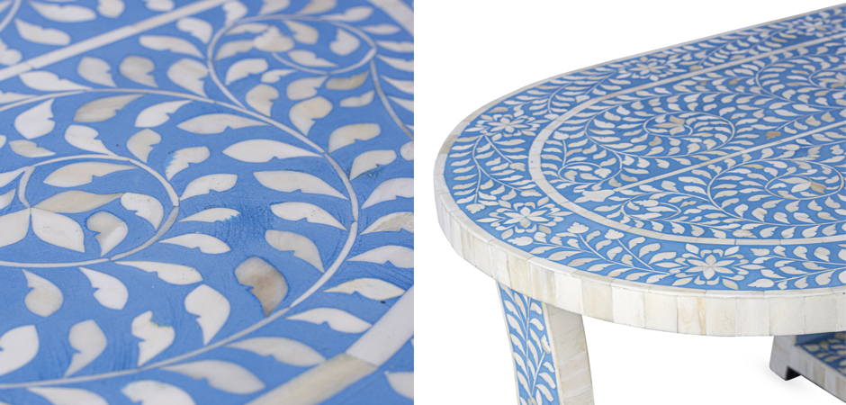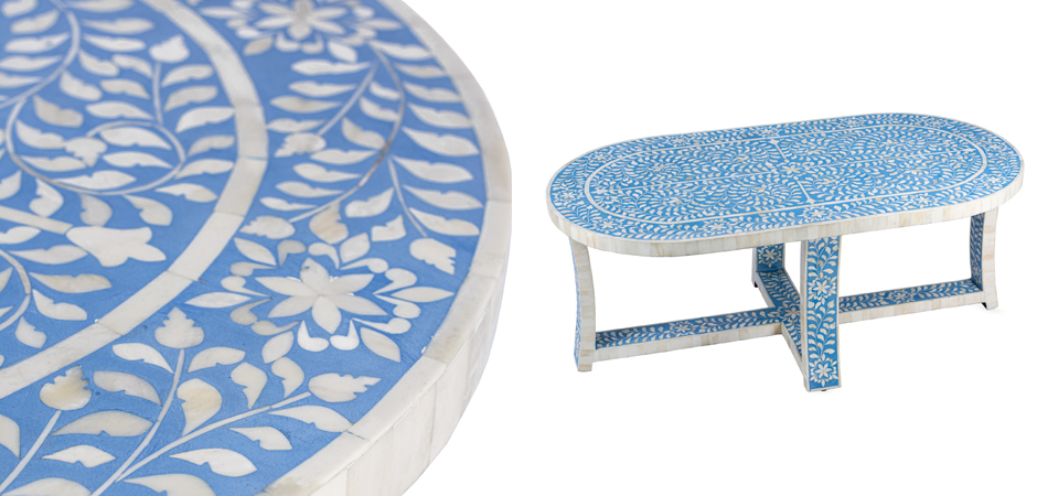 Стол голубой отделка кость Butler Sabina Blue Bone Inlay Oval Coffee Table