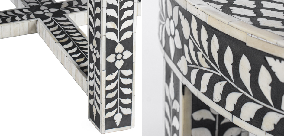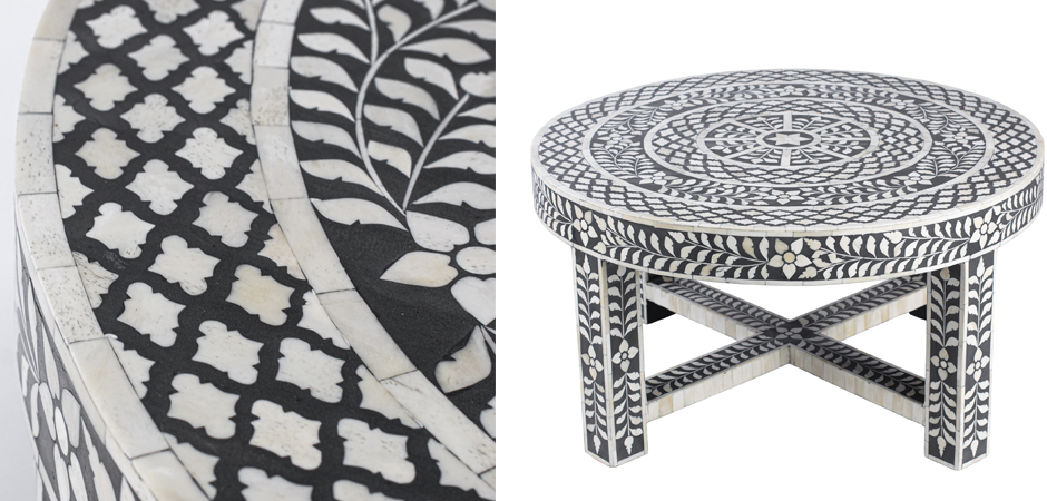 Стол кофейный черно-белый орнамент BONE INLAY ROUND COFFEE TABLE