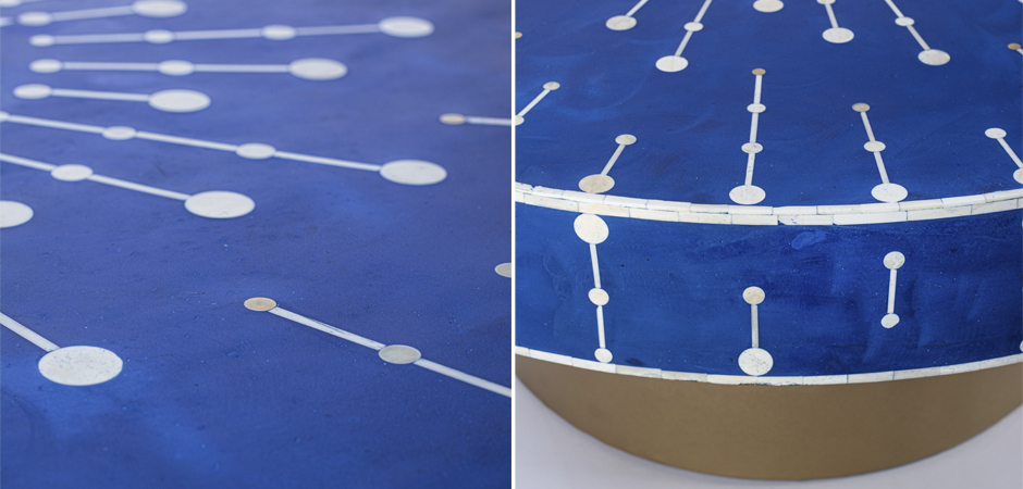 Стол синий отделка кость Bone Inlaid Round Coffee Table