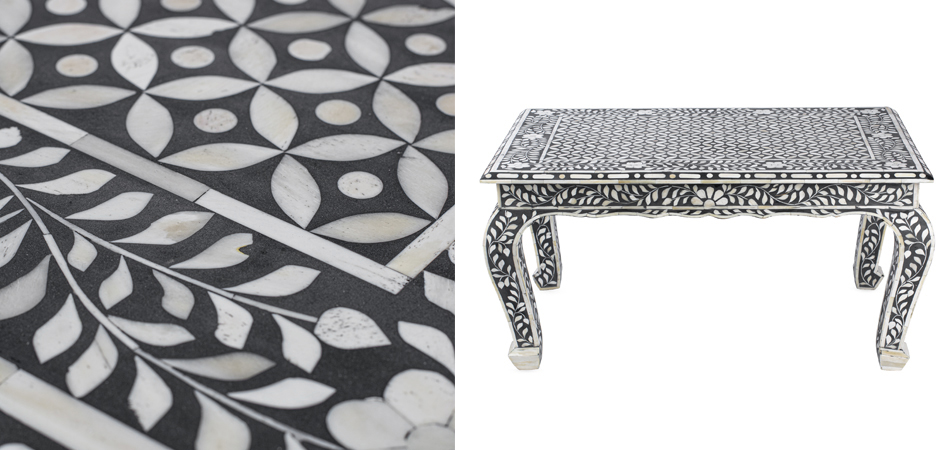 Стол черный отделка кость BONE INLAY Bone Inlay Coffee Table
