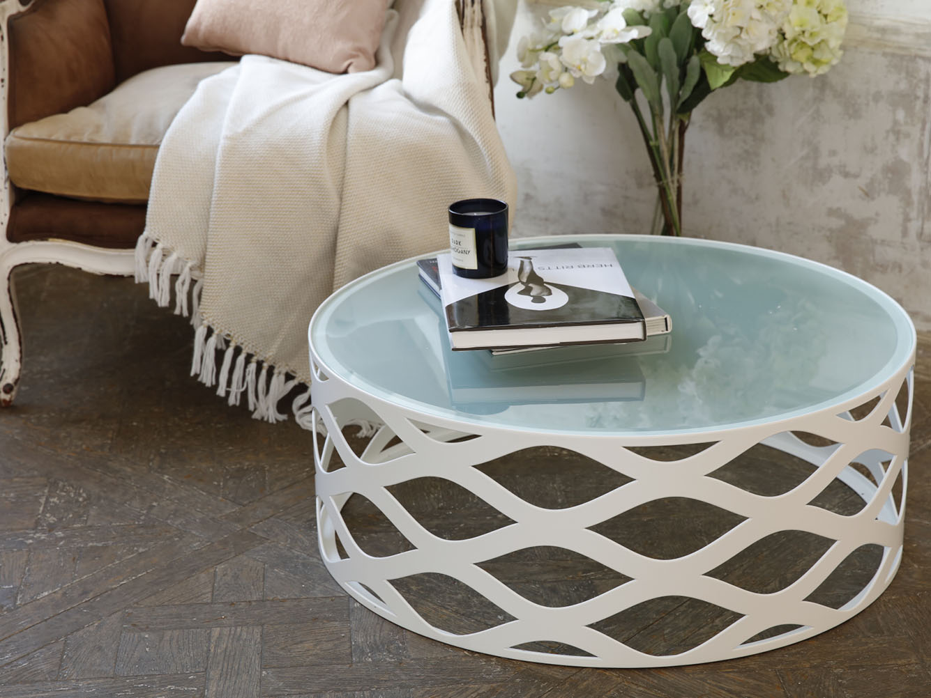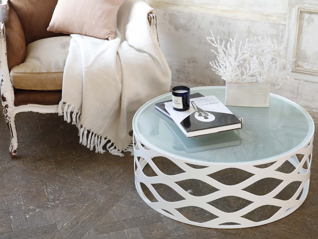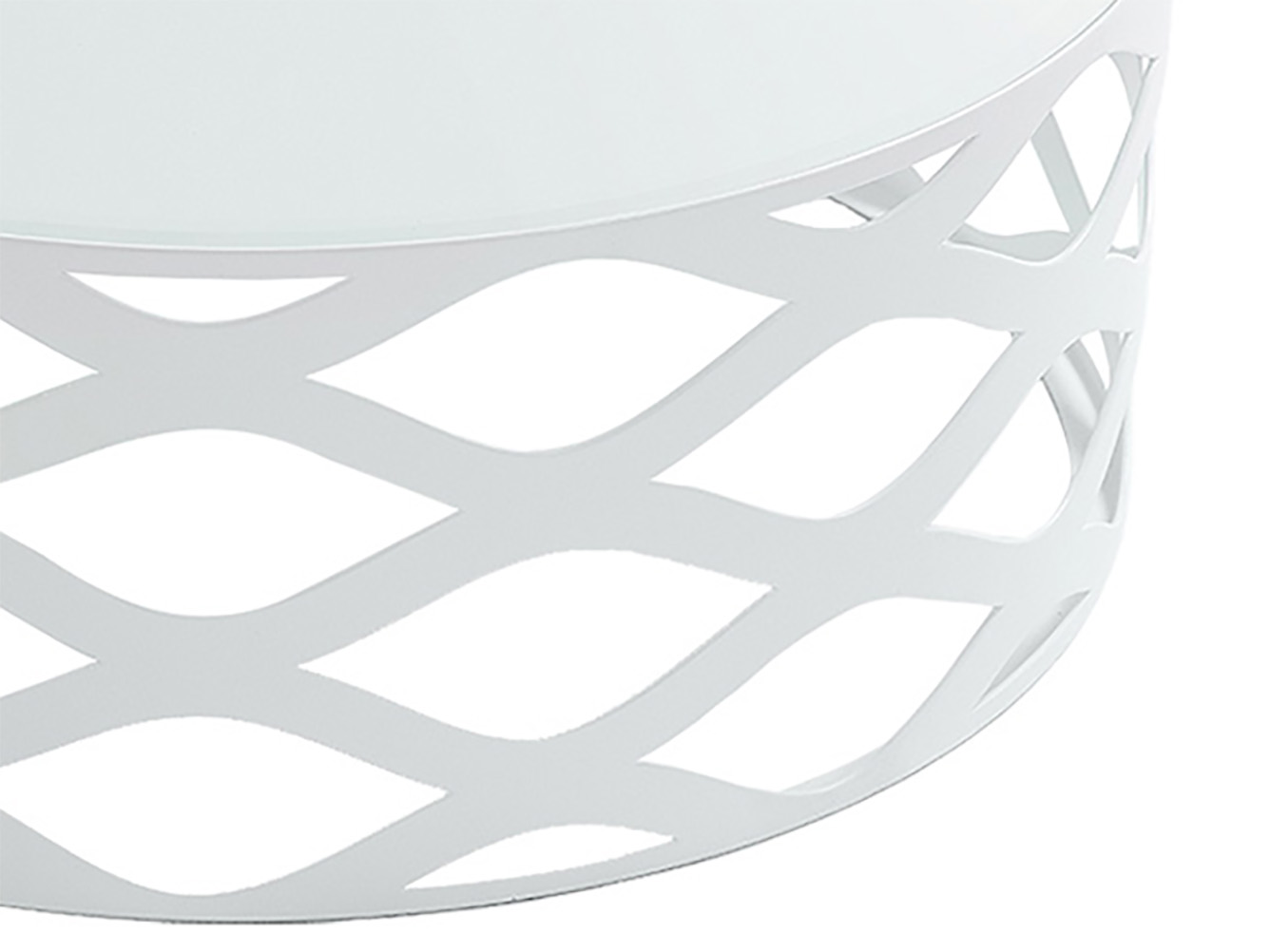 Дизайнерский журнальный столик СИНГАПУР D800 мм — Белое матовое подстолье, выполненное из резного металла, и белая столешница из закаленного стекла — все это удачно сочетается в журнальном столике СИНГАПУР. Он идеально подойдет как для классического интерьера, так и для ар-деко, придавая интерьеру лёгкость и воздушность.