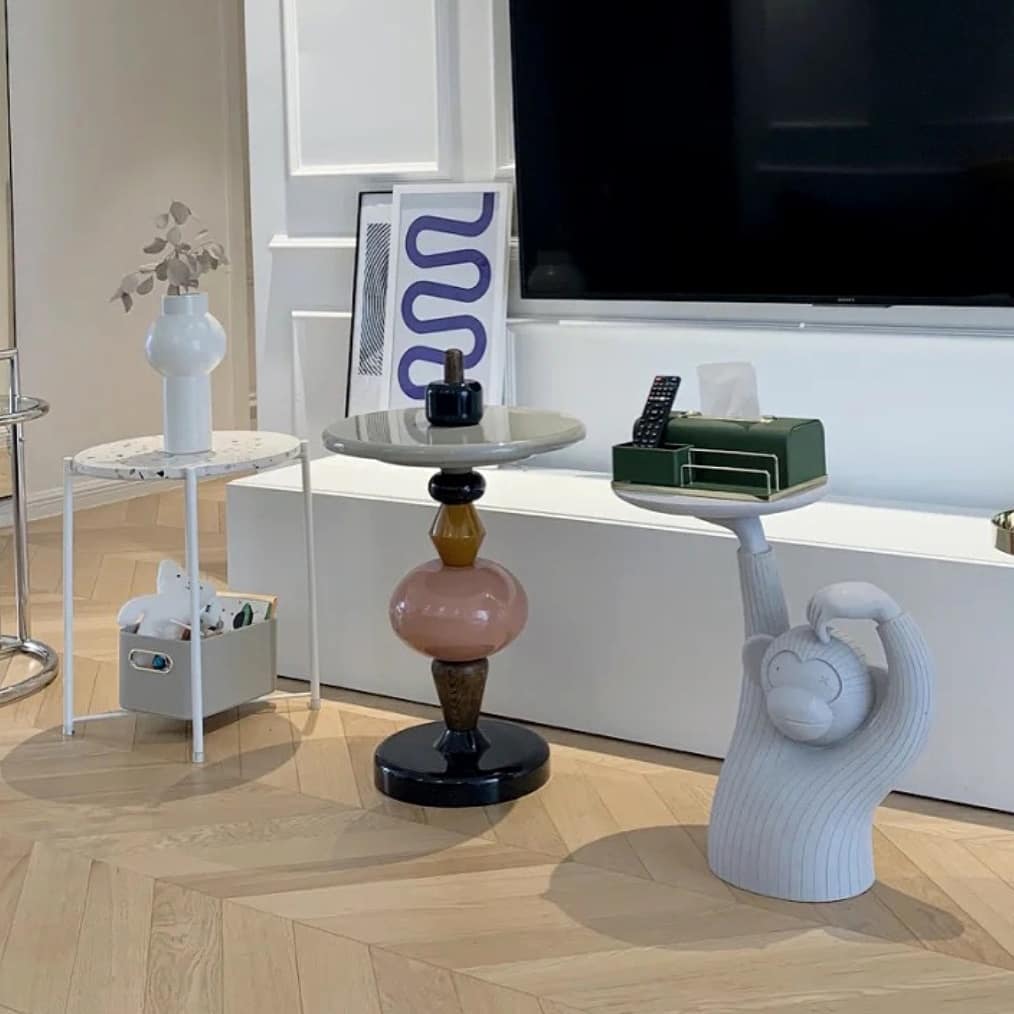 Дизайнерские приставные столики Monsterior Shop, как стильное и очаровательное решение для современного, яркого интерьера. Дерево, мдф, экологичный лак. Столики мобильны, комфортно украсят и гостиную, и уютную спальню.