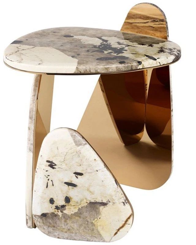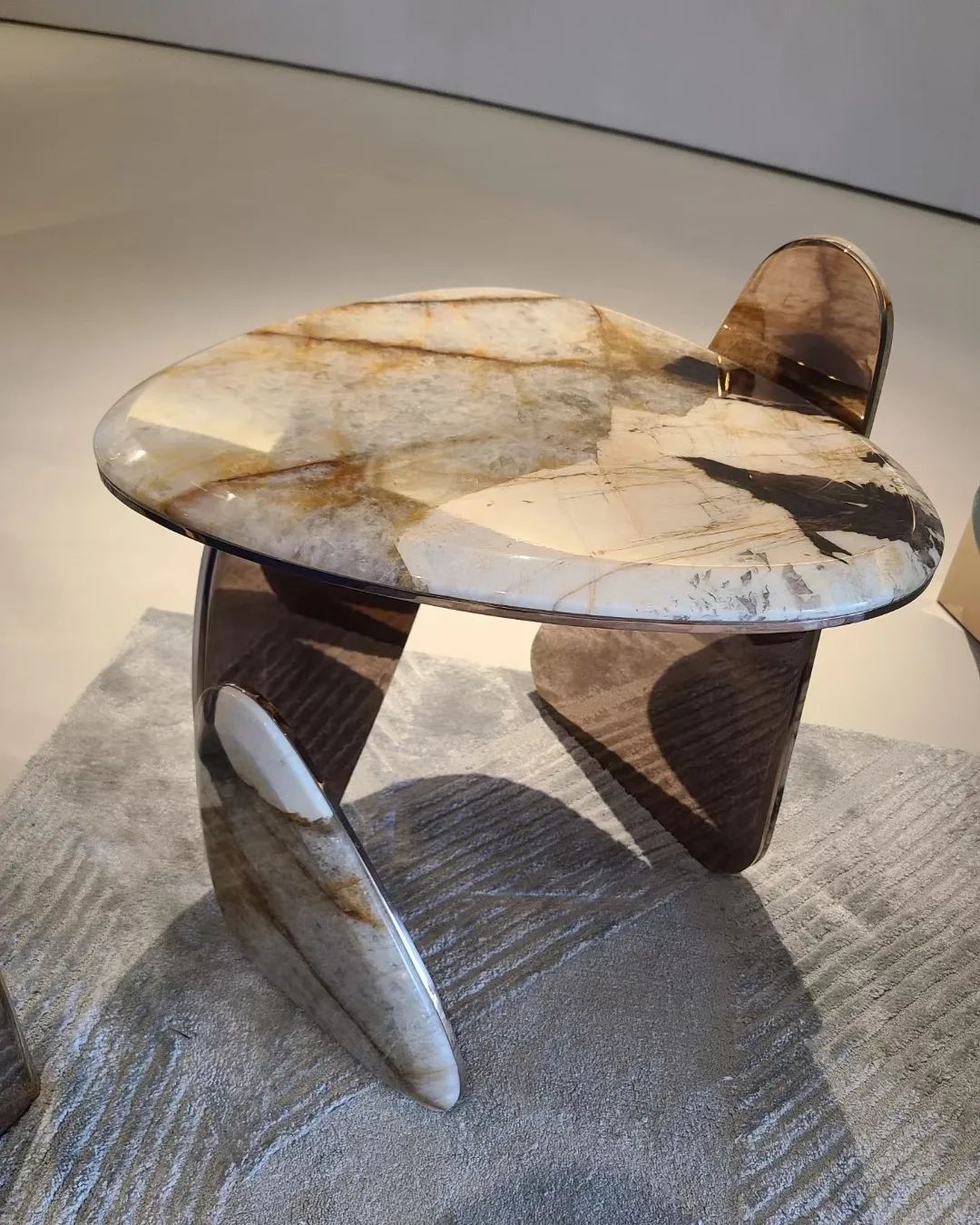 Шикарная линейка приставных столиков. Яркое решение для современного стильного интерьера. Столешницы из отборного кварцита Патагония, подстолье – нержавеющая сталь с отделкой на выбор.