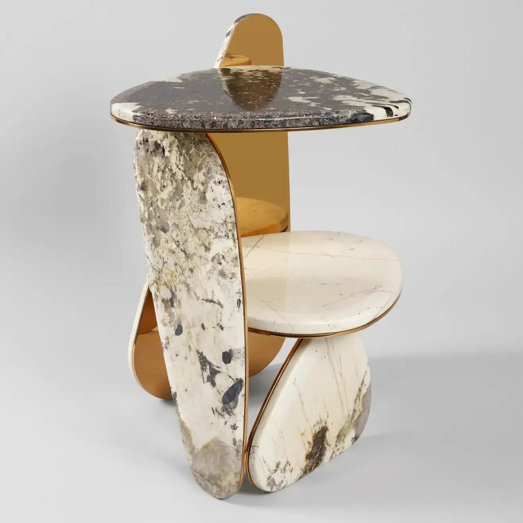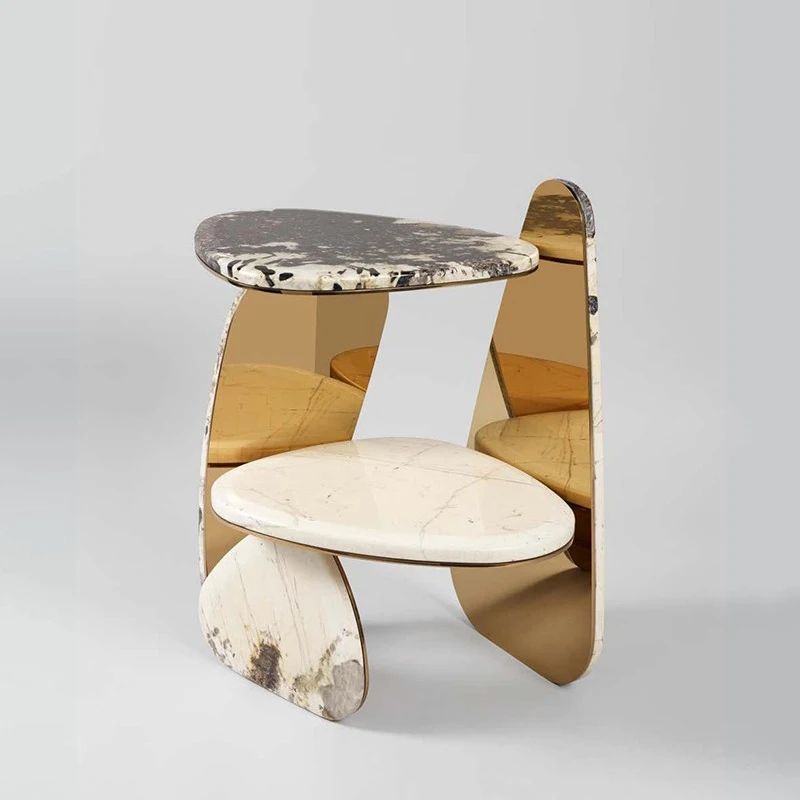 Шикарная линейка приставных столиков. Яркое решение для современного стильного интерьера. Столешницы из отборного кварцита Патагония, подстолье – нержавеющая сталь с отделкой на выбор.