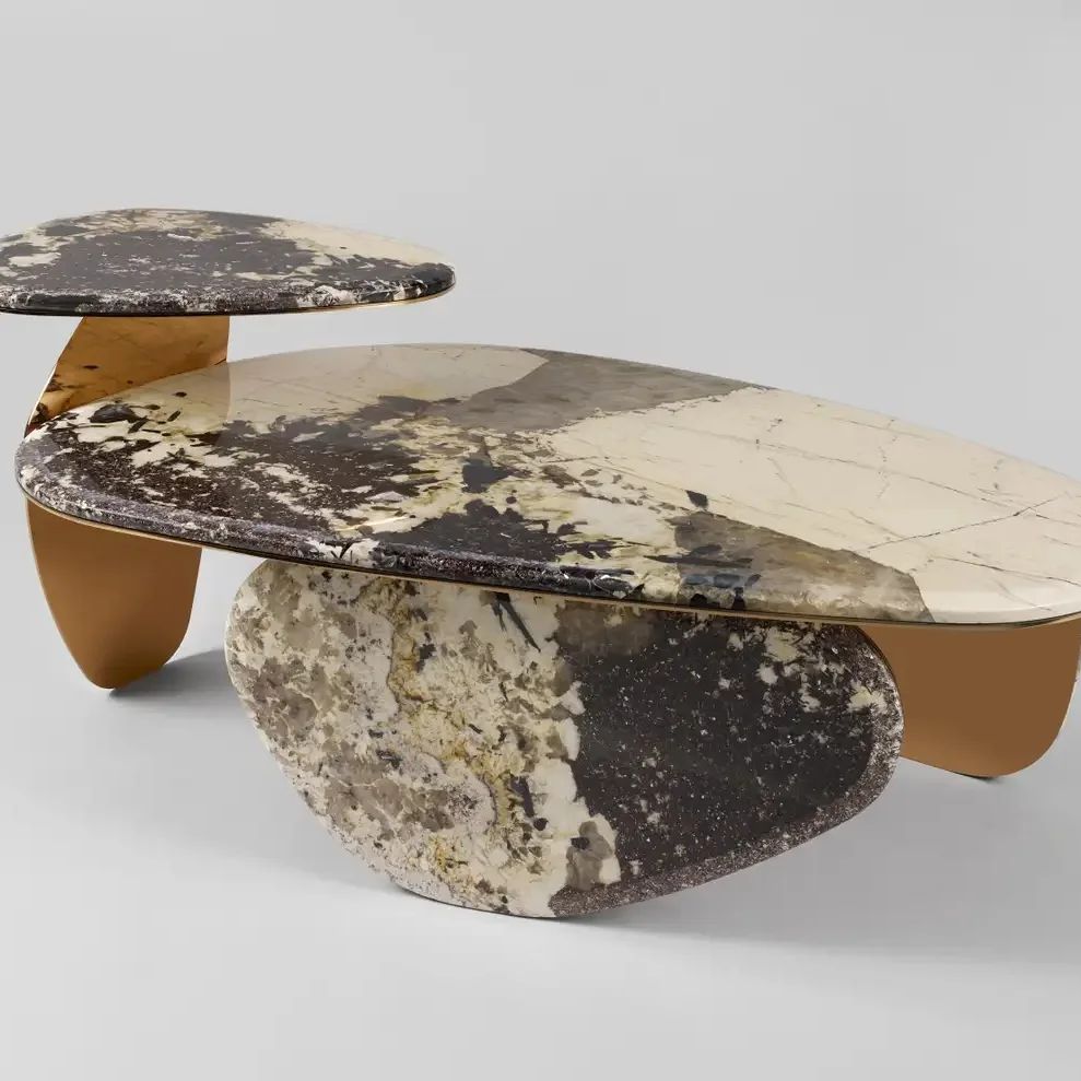 Шикарная линейка приставных столиков. Яркое решение для современного стильного интерьера. Столешницы из отборного кварцита Патагония, подстолье – нержавеющая сталь с отделкой на выбор.