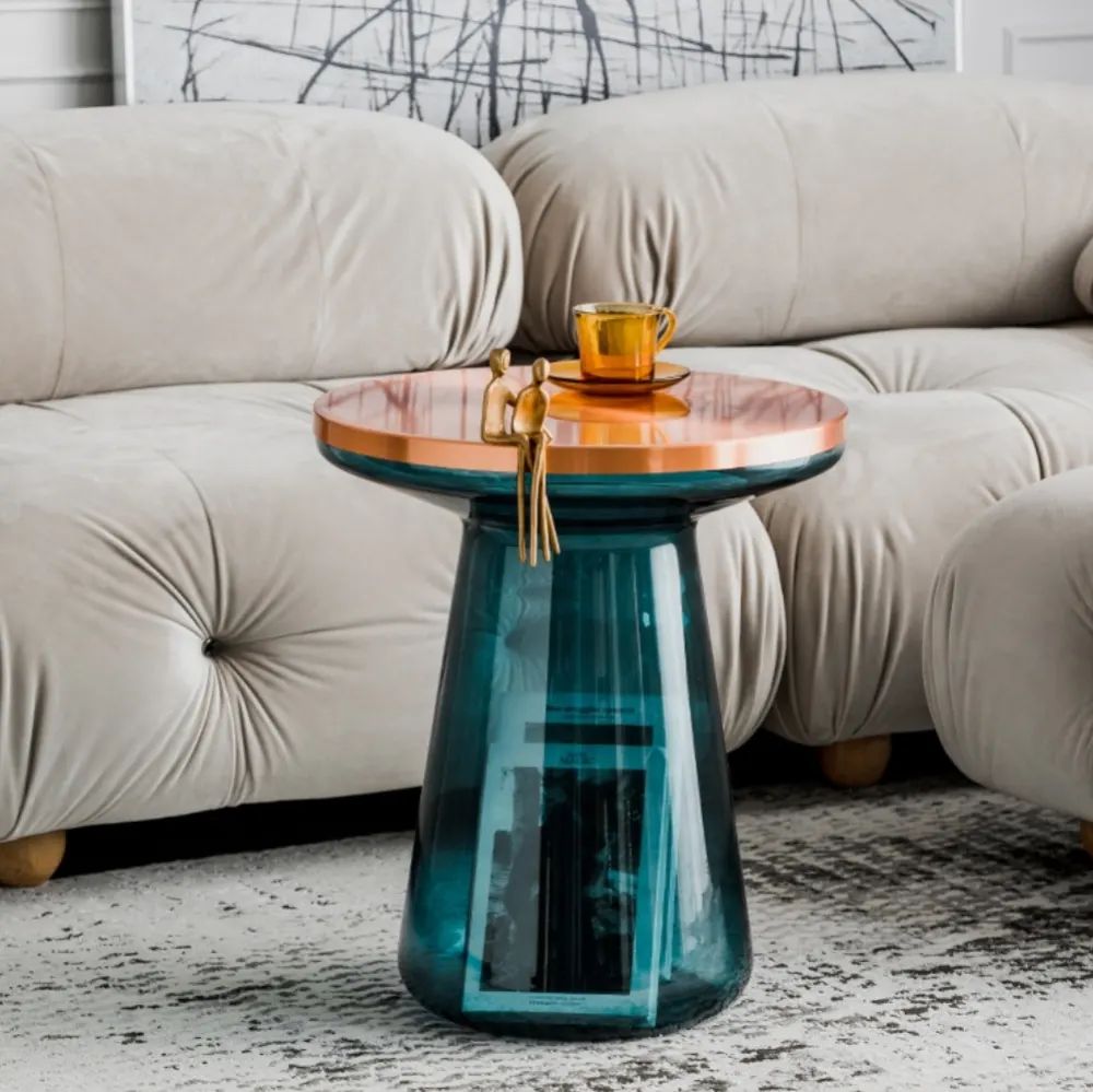 Очаровательные приставные/журнальные столики Monsterior Shор. Классное и стильное решение для современной гостиной или спальни. Ручная работа. Медь, цветное стекло.