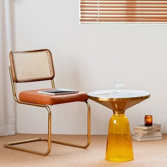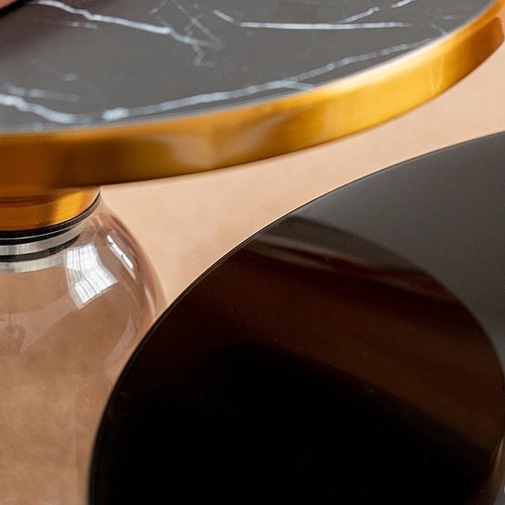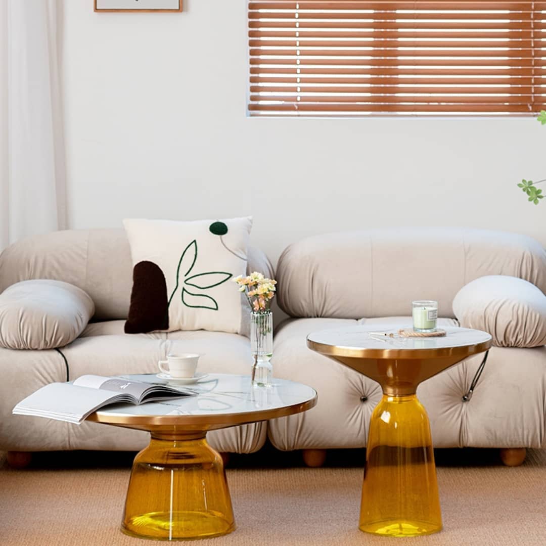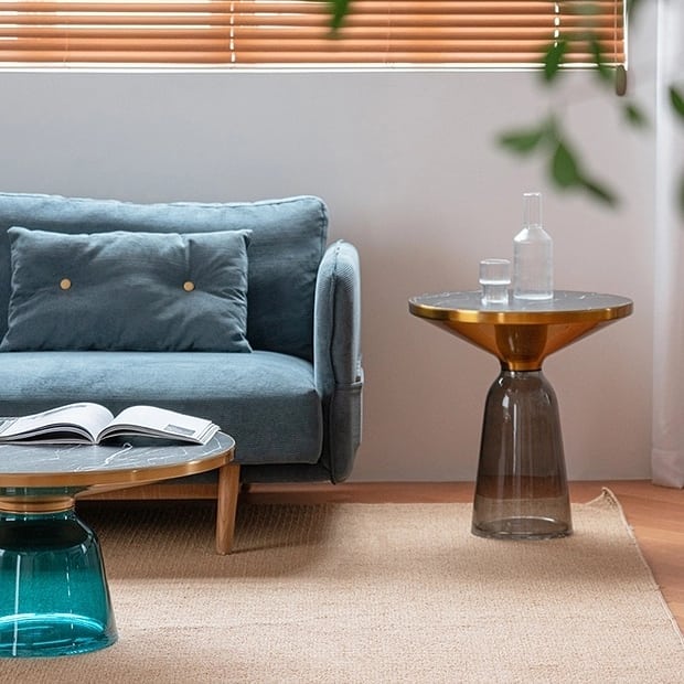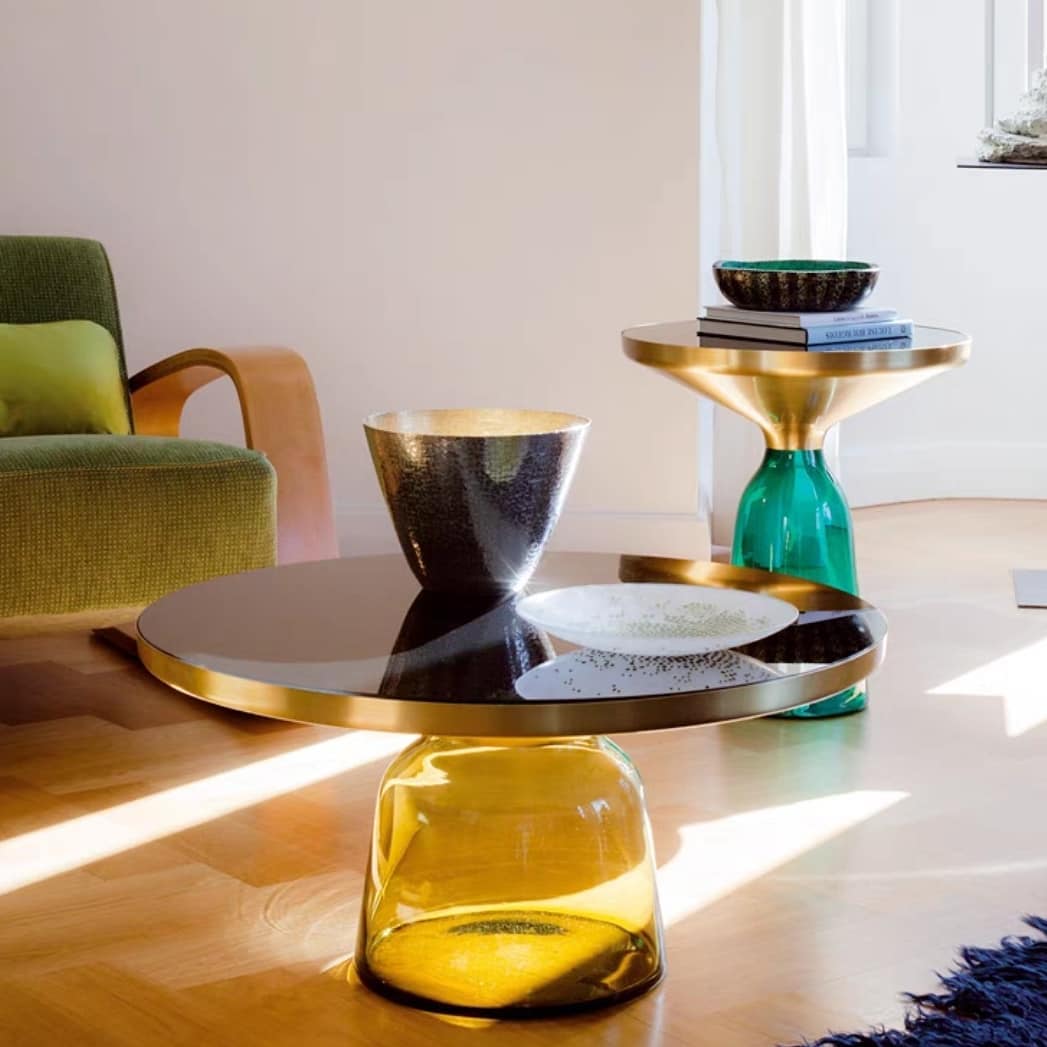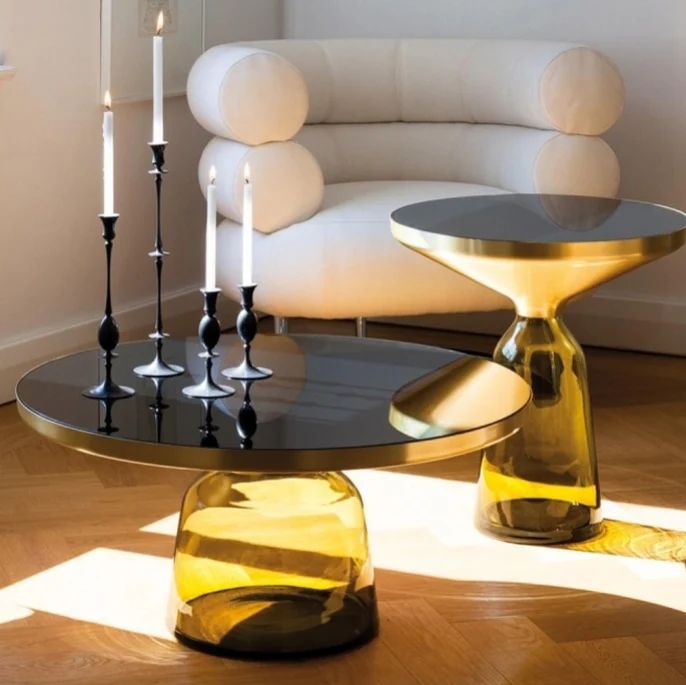 Оригинальный дизайн, ручная работа. Яркое решение для роскошного интерьера современной спальни или гостиной. Калёное стекло, латунь. Роскошные приставные столики! Яркое подстолье – в восхитительно-насыщенных цветах каленого стекла ручной работы. Столешница, окаймленная нержавеющей сталью со специальным покрытием. Шикарное решение для интерьера спальни, гостиной, студии или лаунж-зоны. А как красиво с ними играют солнечные лучи, создавая неповторимые блики!