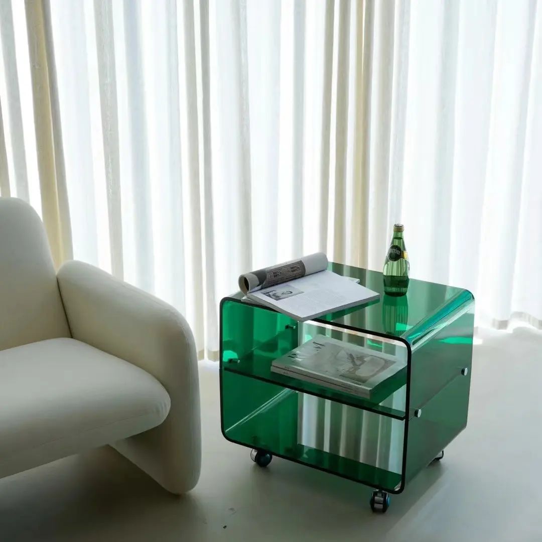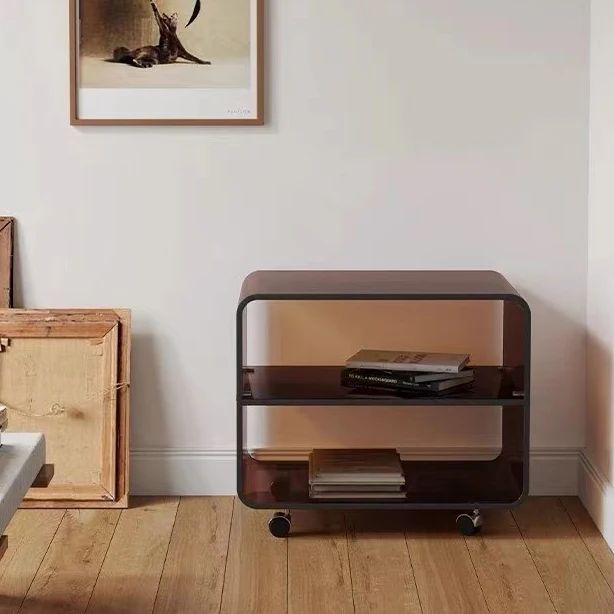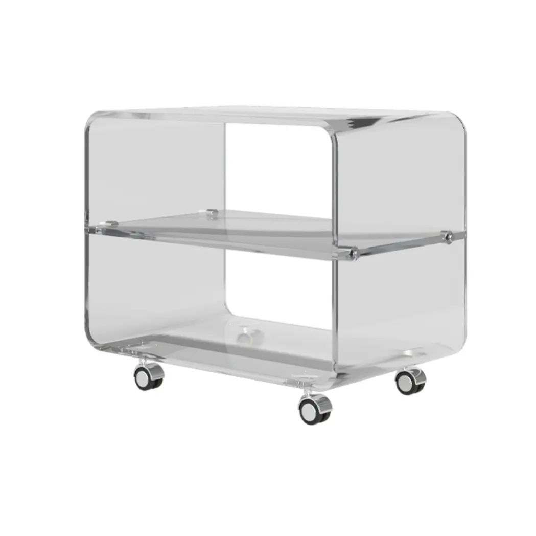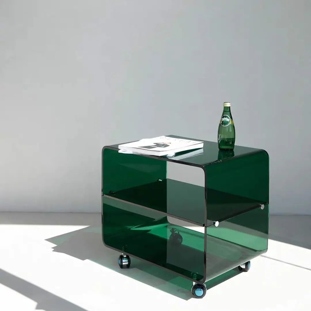 Стильный приставной/журнальный столик из акрила. Современный дизайн и отличная, благодаря бесшумным колёсикам, мобильность. Различные цвета – на заказ. Классное, универсальное решение для гостиной и (или) спальни – столик отлично исполнит и роль прикроватной тумбочки.