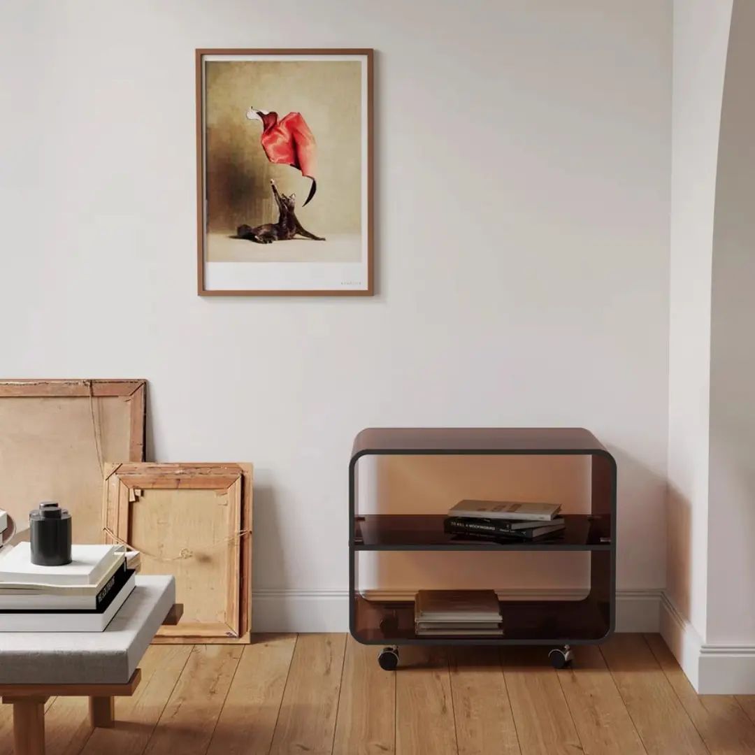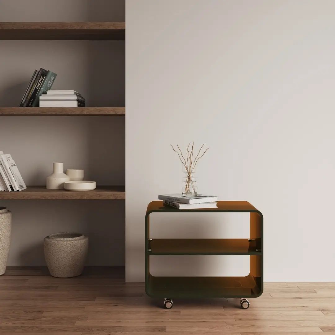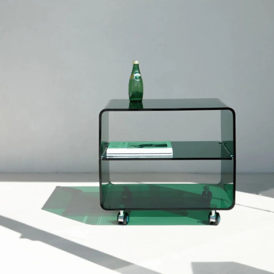 Стильный приставной/журнальный столик из акрила. Современный дизайн и отличная, благодаря бесшумным колёсикам, мобильность. Различные цвета – на заказ. Классное, универсальное решение для гостиной и (или) спальни – столик отлично исполнит и роль прикроватной тумбочки.