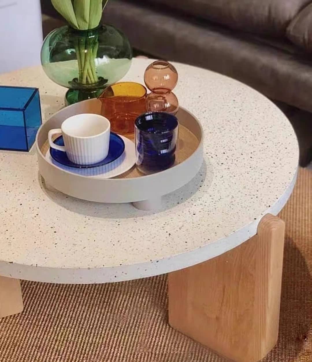 Дизайнерский журнальный столик. Очаровательный и стильный! Столешница из высококачественного терраццо, подстолье – массив ясеня. Хороший выбор для ценителей уникальной мебели из классических материалов. Отличное решение для солидного интерьера. Различные цветовые решения.
