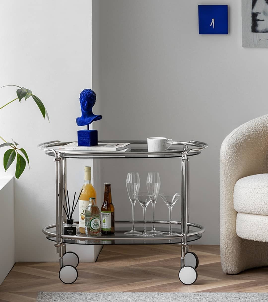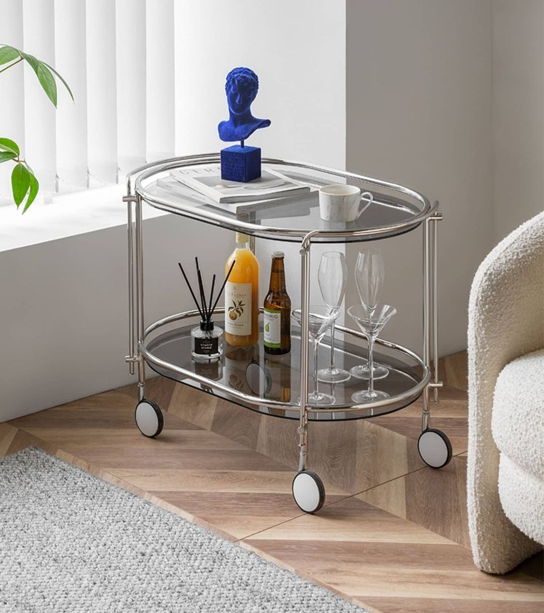 Элегантный сервировочный столик с функцией вращения на 360°. Галантный и надежный помощник на легком ходу, который эффектно впишется в современный стильный интерьер.