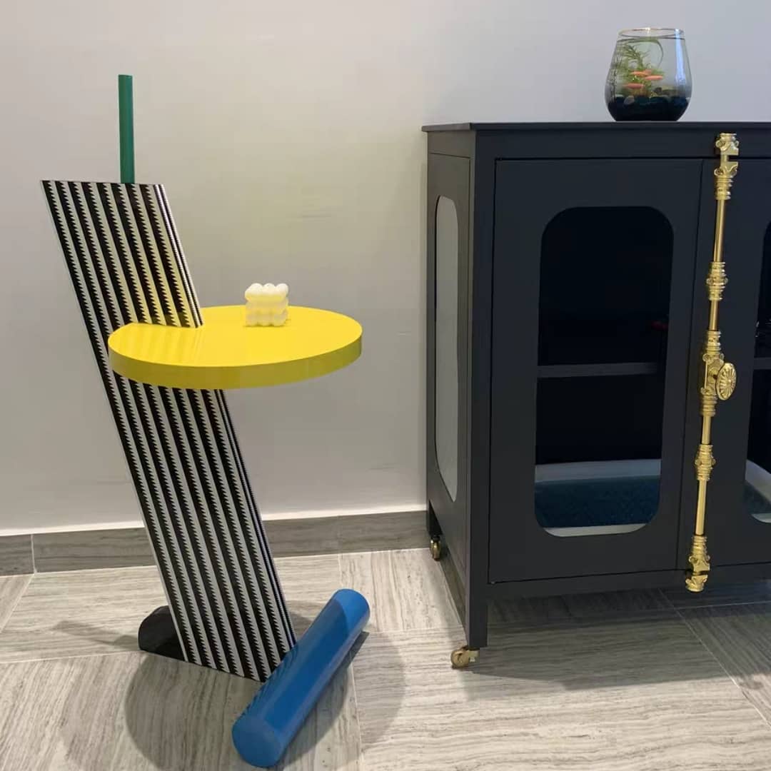 Столик с классным и непривычным дизайном. Яркий, современный и очень стильный приставной столик! И традиционное «подстолье» этого столика можно смело назвать и оригинальным «надстольем». Прекрасный источник для позитивных эмоций и отличное украшение для интерьера вашей спальни или гостиной.