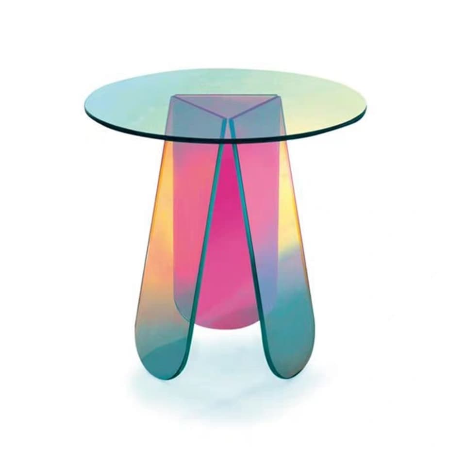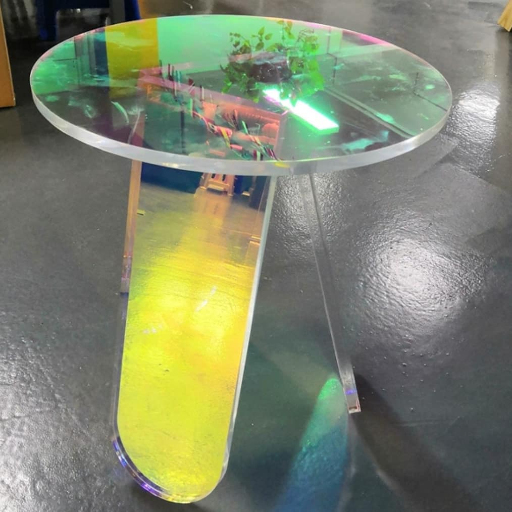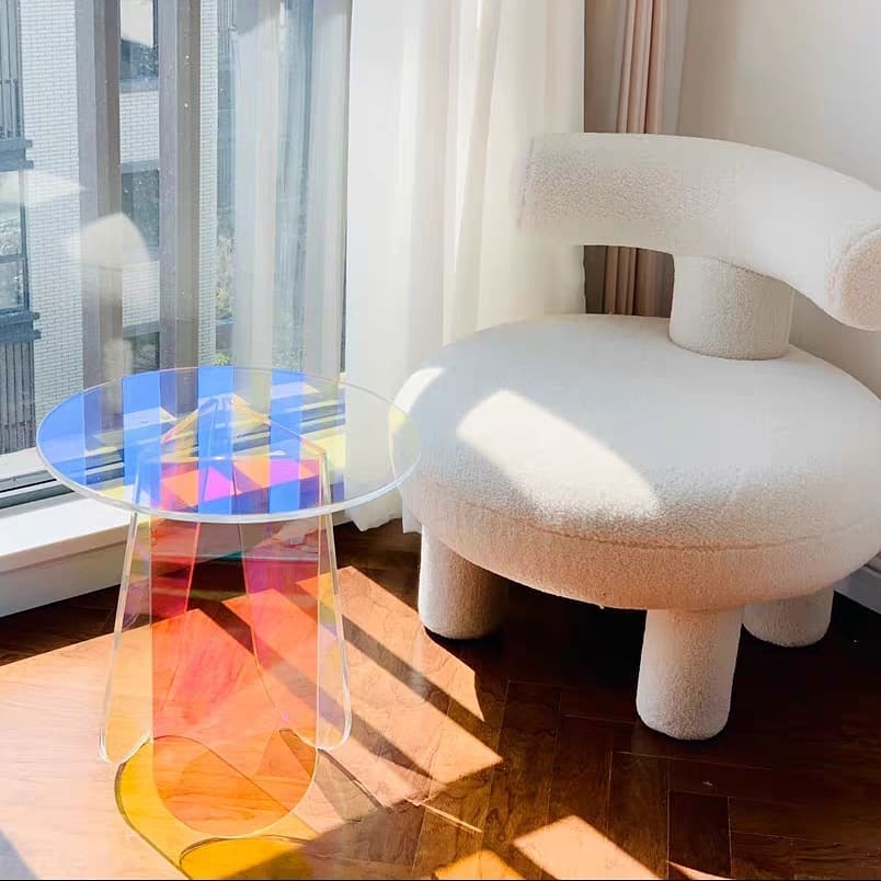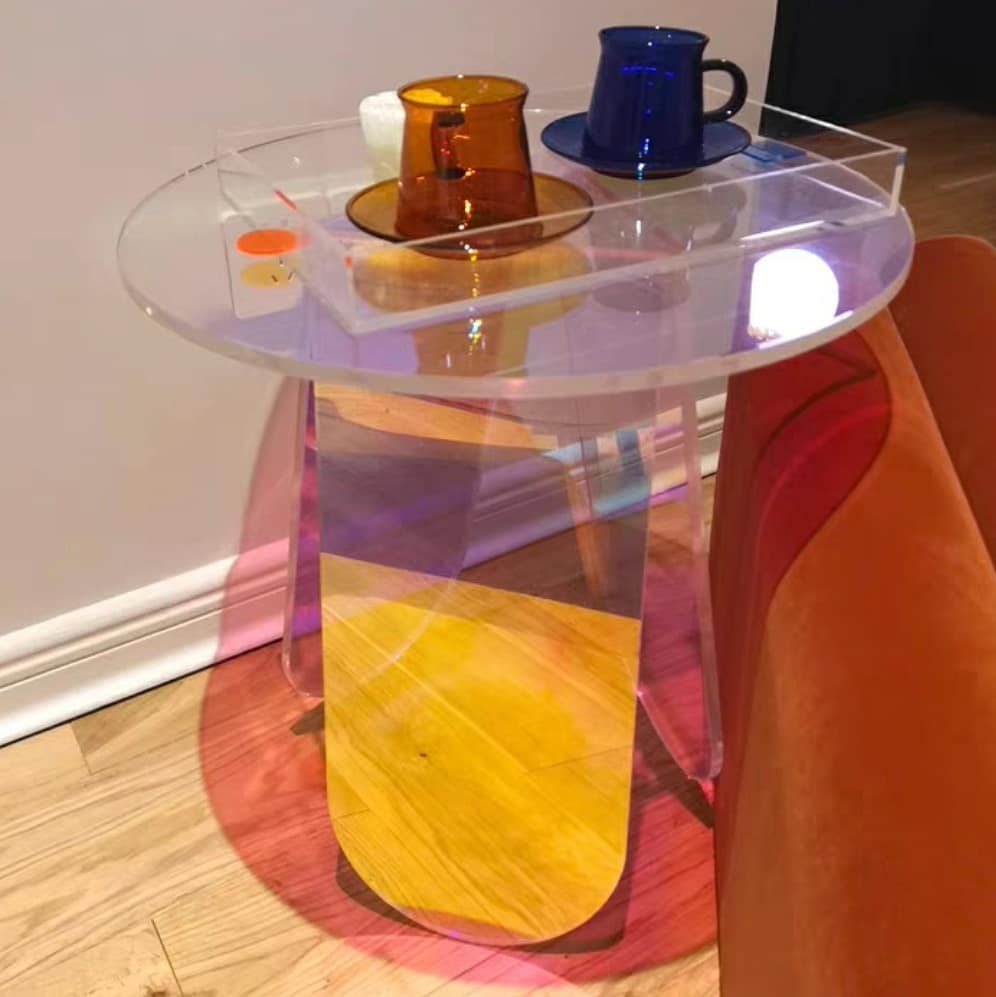 Эффектный футуристический столик из прозрачного акрила — идеальное решение для негабаритного пространства. Невесомая конструкция будто левитирует в воздухе и красиво отражает преломление света. Источник портативной радуги в солнечный день!