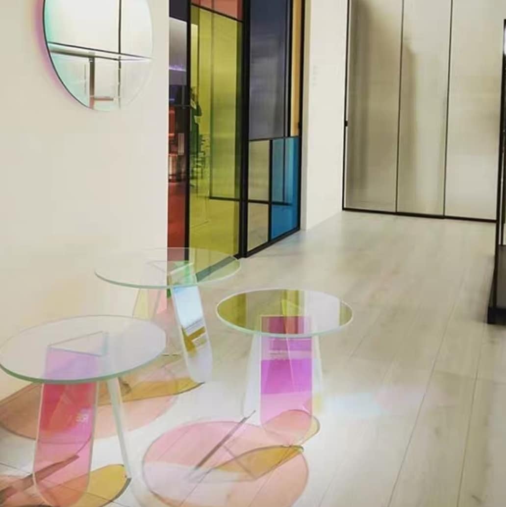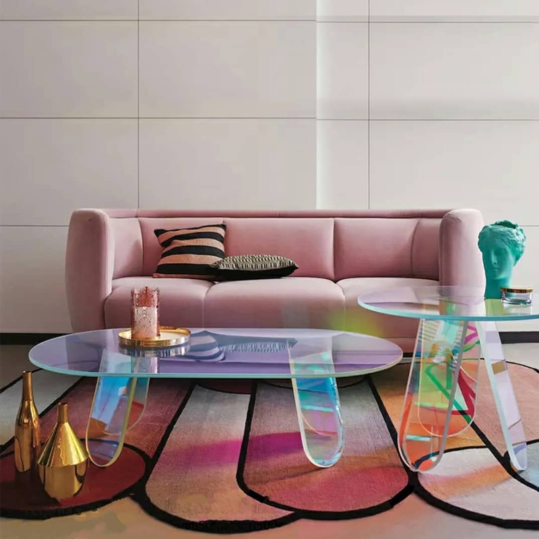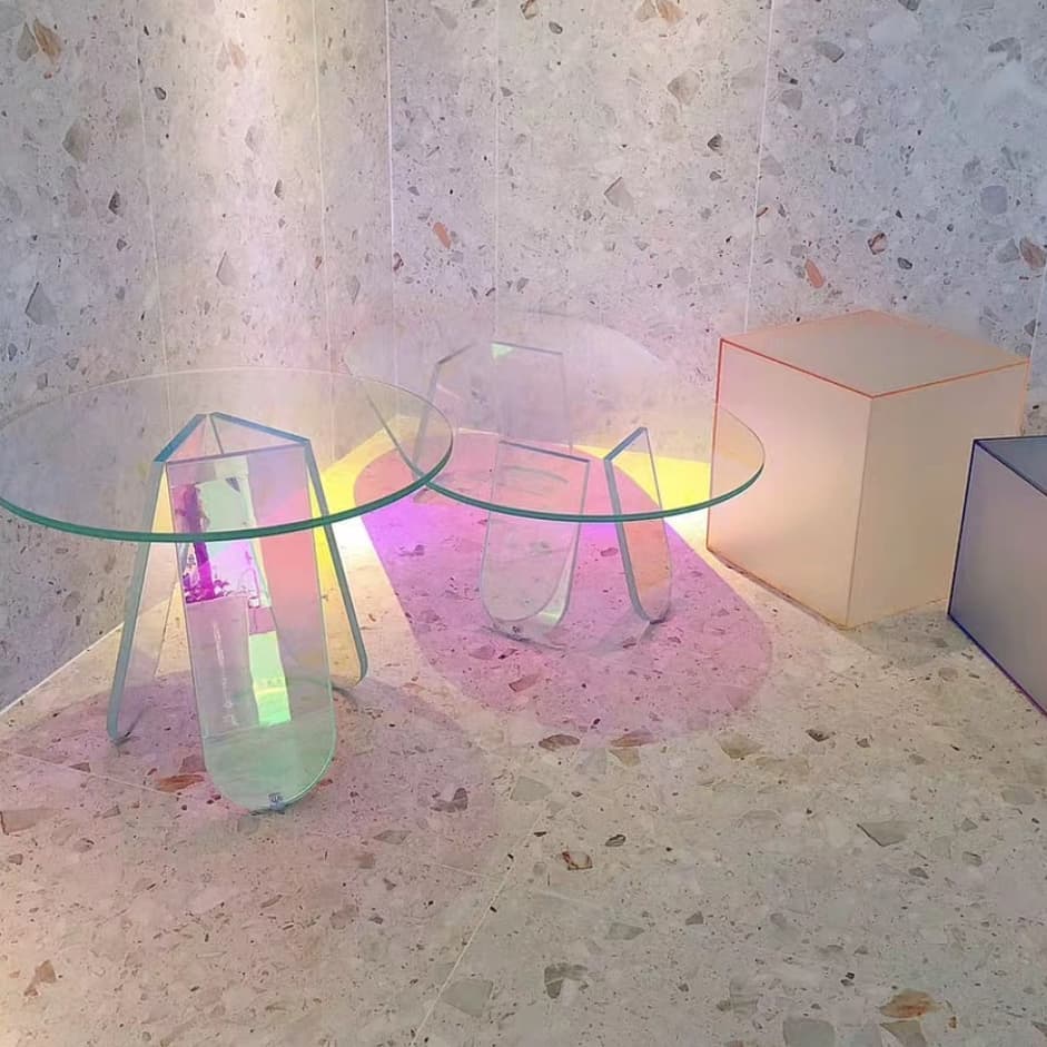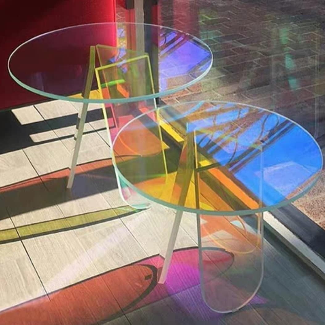 Эффектный футуристический столик из прозрачного акрила — идеальное решение для негабаритного пространства. Невесомая конструкция будто левитирует в воздухе и красиво отражает преломление света. Источник портативной радуги в солнечный день!