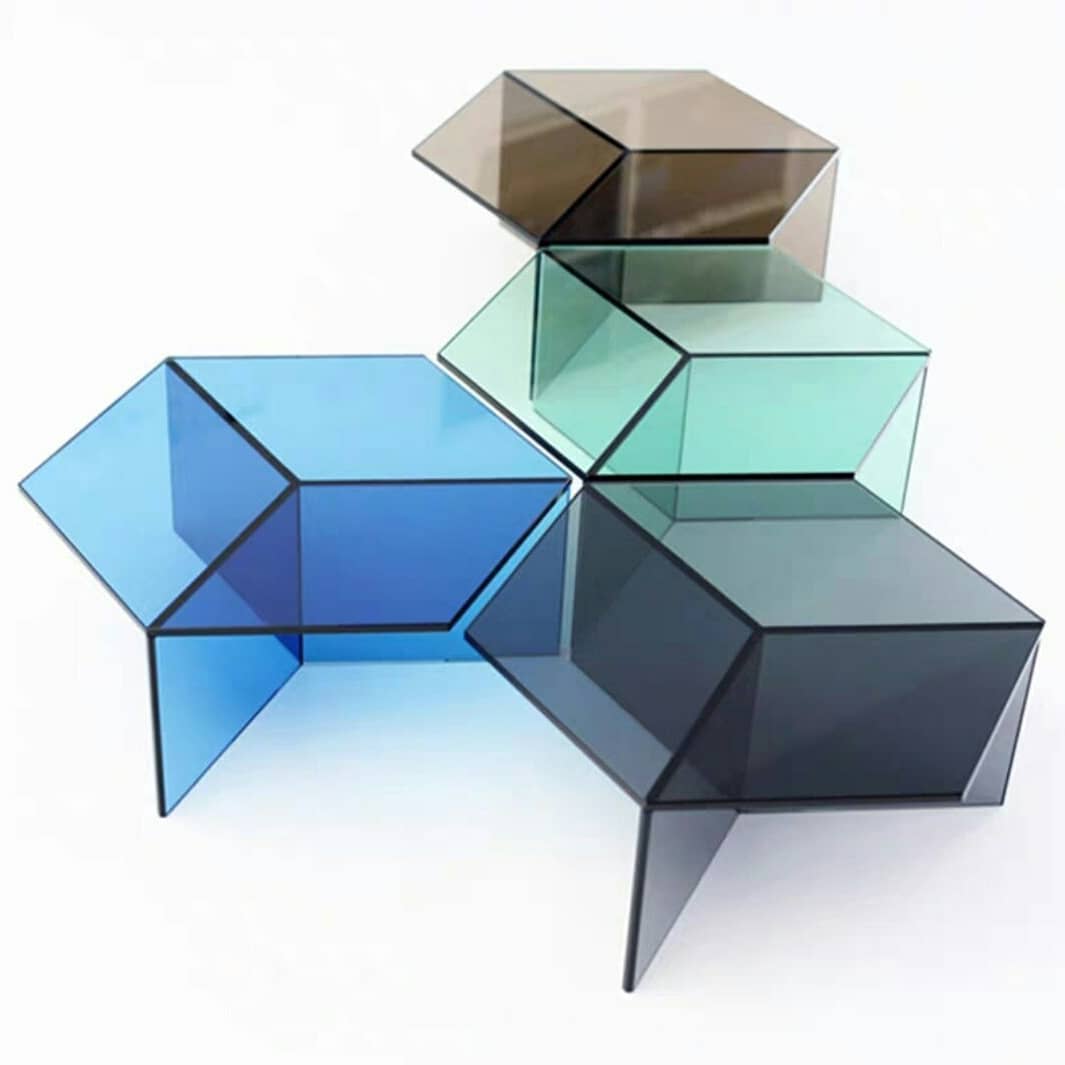 Оригинальная геометрия и гарантированный «призматический» эффект! Шестиугольная столешница и трехгранное подстолье, благодаря свойствам акрила, на удивление красиво преломляют лучи света. И «дневной» столик, к примеру, будет визуально отличаться от «вечернего». Доступные цвета на фото. Три вида размеров: 39х43 см, 70х80 см, 102х120 см.