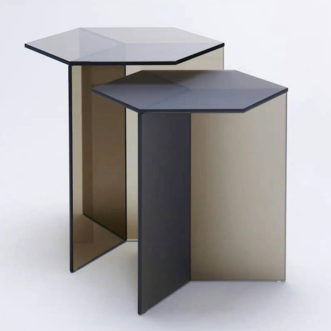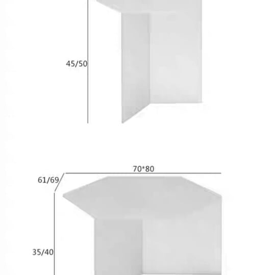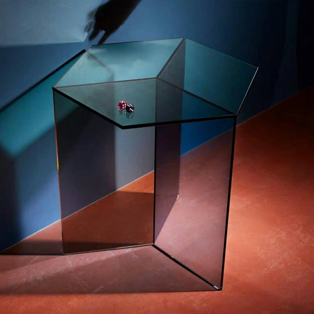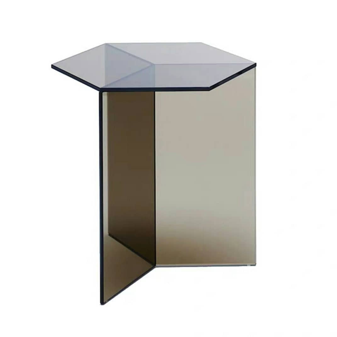 Оригинальная геометрия и гарантированный «призматический» эффект! Шестиугольная столешница и трехгранное подстолье, благодаря свойствам акрила, на удивление красиво преломляют лучи света. И «дневной» столик, к примеру, будет визуально отличаться от «вечернего». Доступные цвета на фото. Три вида размеров: 39х43 см, 70х80 см, 102х120 см.
