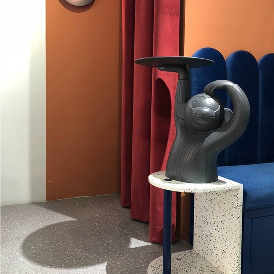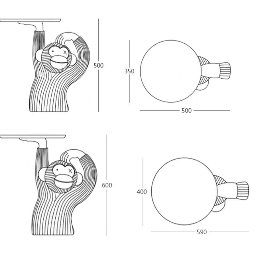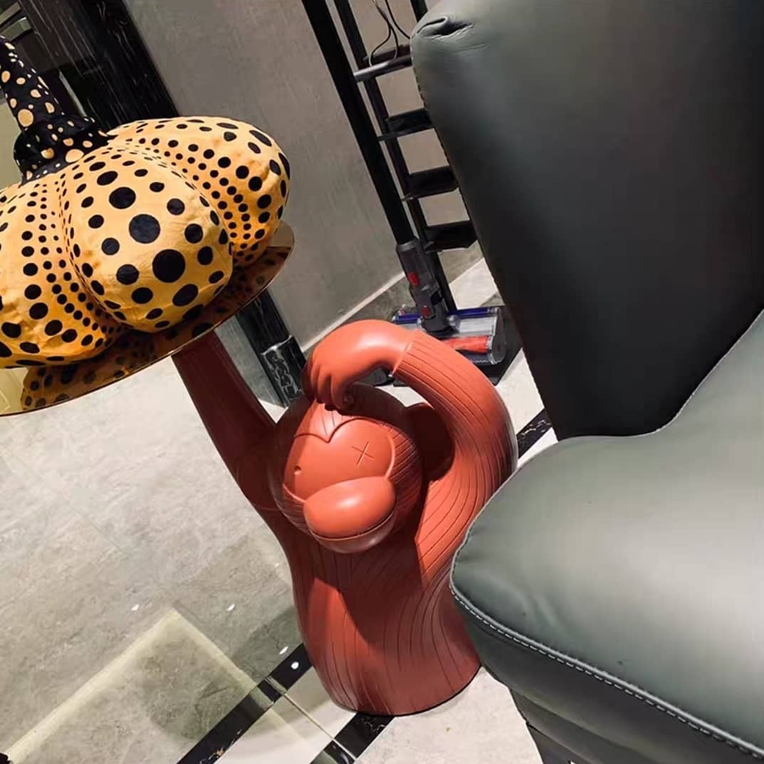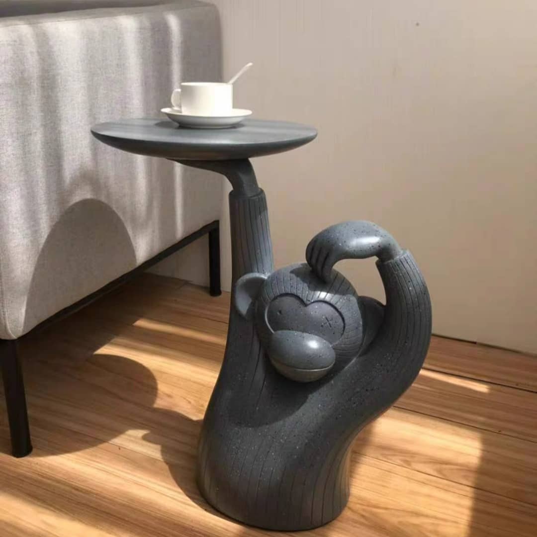 Monkey tablе – позитивный дизайнерский столик, с оригинальным подстольем. Поднос-столешница, на заказ, может быть изготовлена из высококачественной нержавеющей стали, с «золотым» напылением.