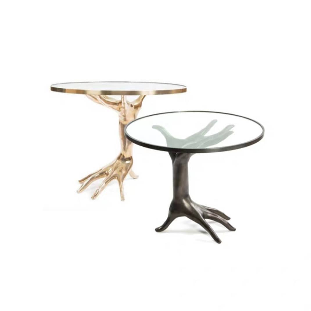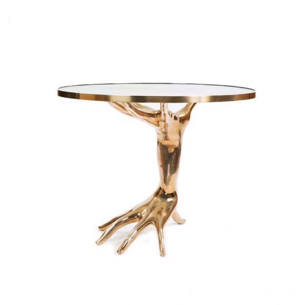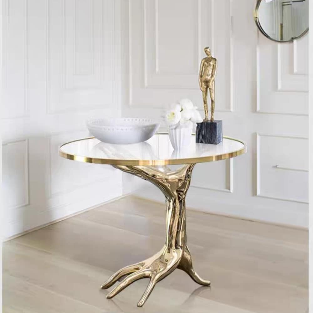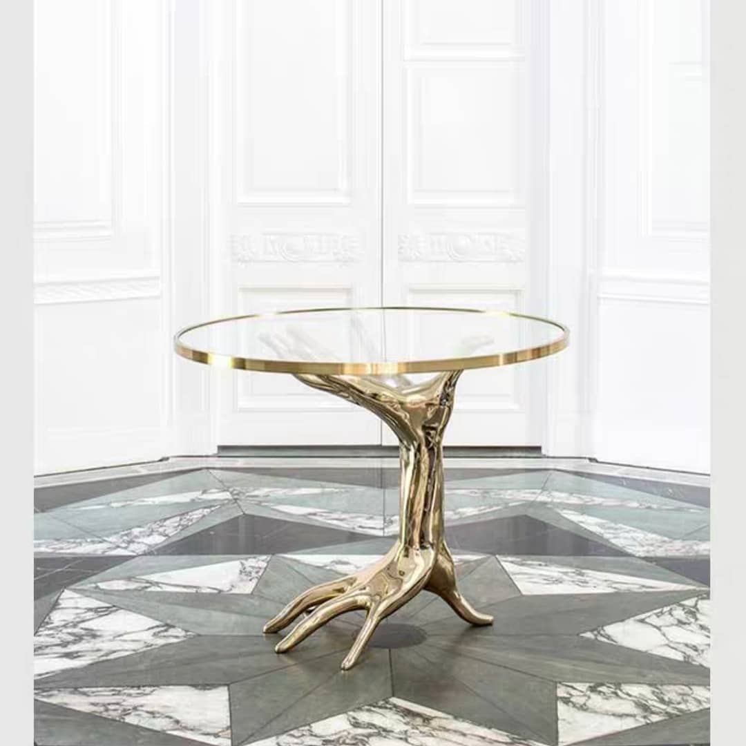 Стекло, латунь, дизайнерская фантазия, и ещё один столик становится похожим на произведение современного искусства, а может даже и является им. Для тех, кто хочет добавить в интерьер оригинальности, яркости и необычности.