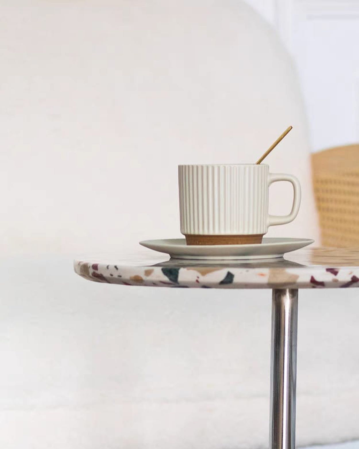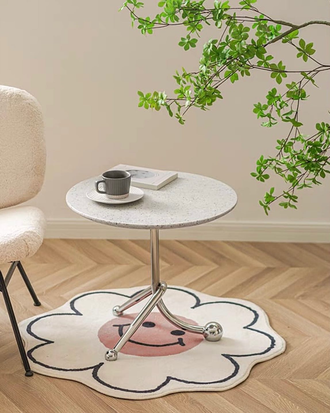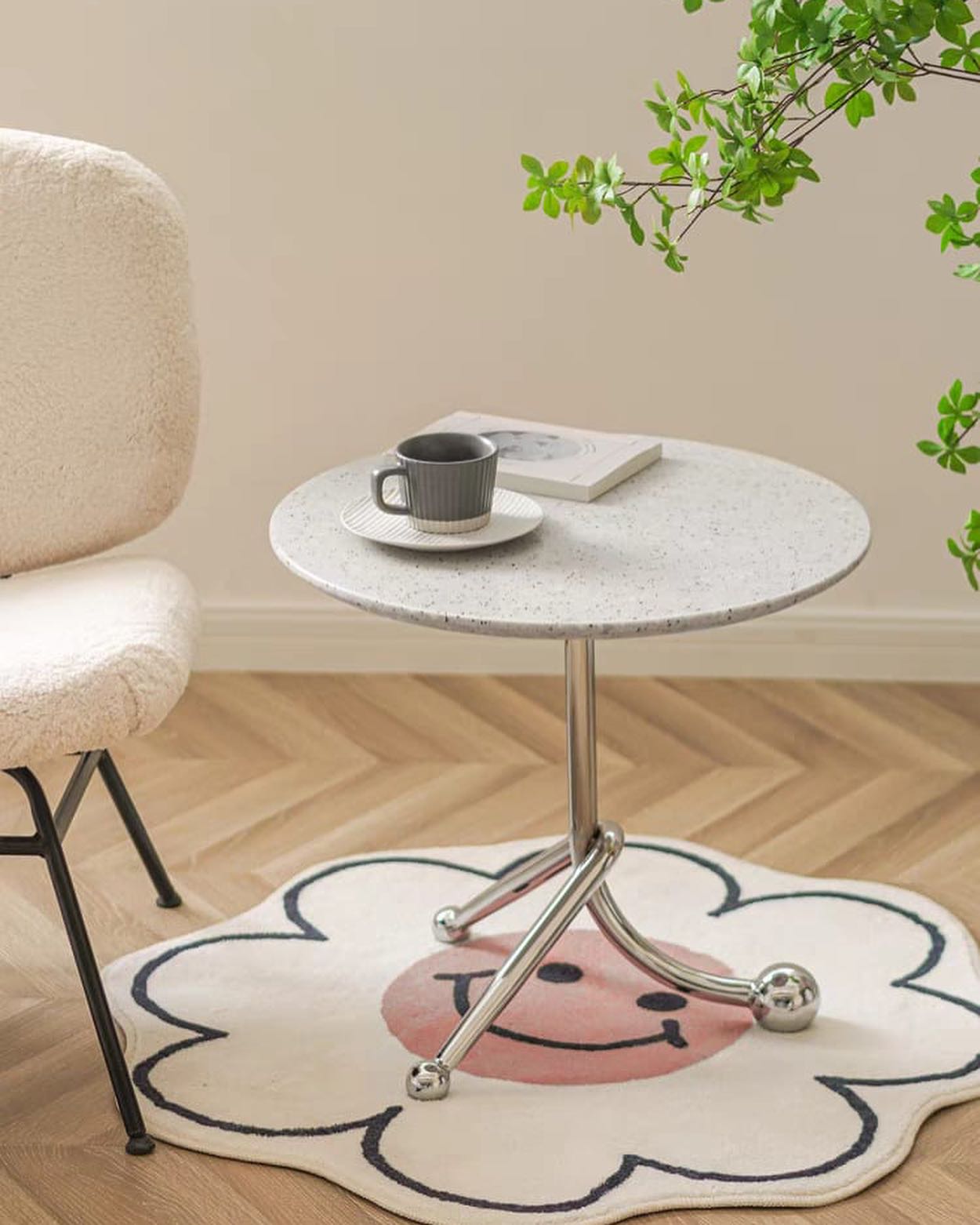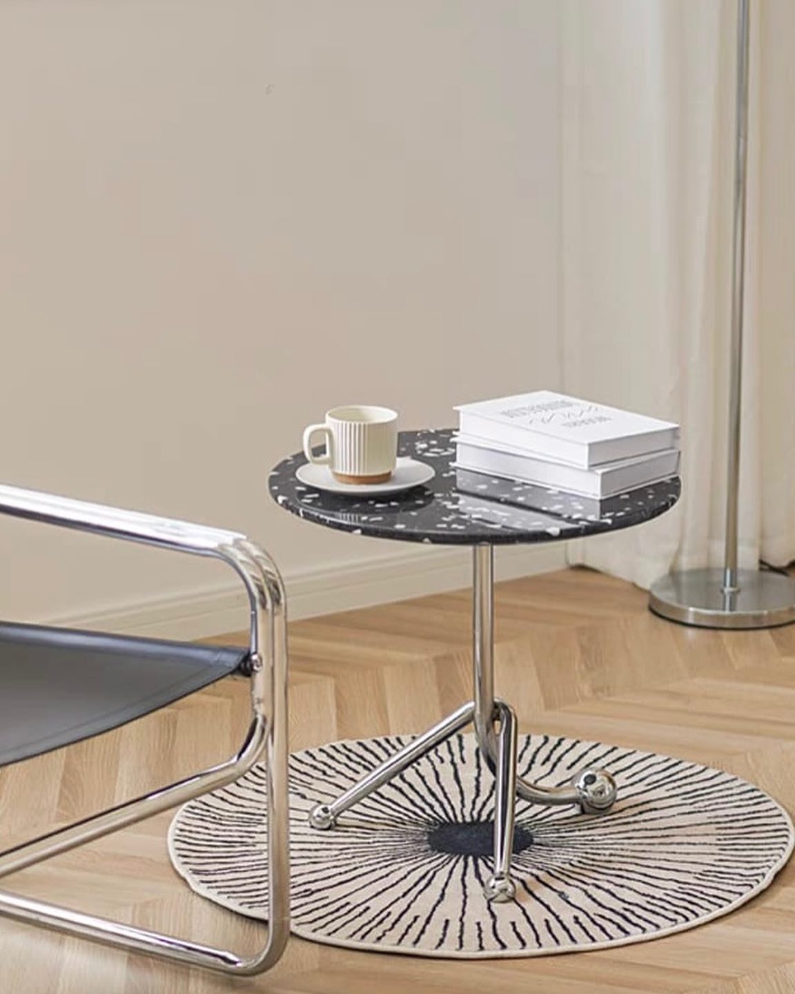 Стильные приставные дизайнерские столики Monsterior Shop. Очаровательная столешница из терраццо, подстолье – нержавеющая сталь. Премиум-качество. Отличное решение для современного интерьера гостиной или спальни.