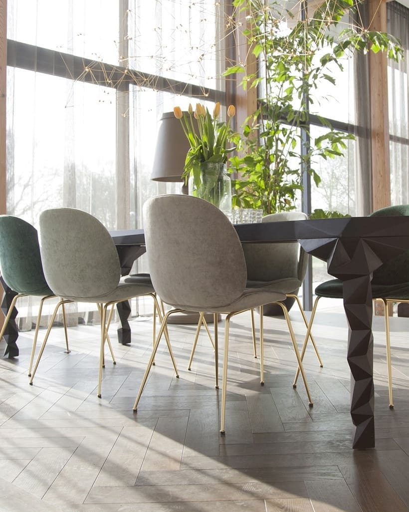А датский дизайнерский дуэт GamFratesi предлагает свой вариант такой красоты — стулья (и барные стулья!) Gubi. Любой интерьер с радостью примет их в свои объятия! Различные варианты обивки — на выбор!