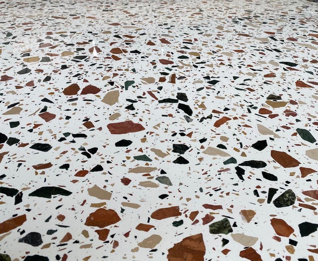 Терраццо из мрамора – один из самых популярных сегодня материалов для отделки пола и стен. Популярность ему обеспечивают высокие эстетические и эксплуатационные характеристики