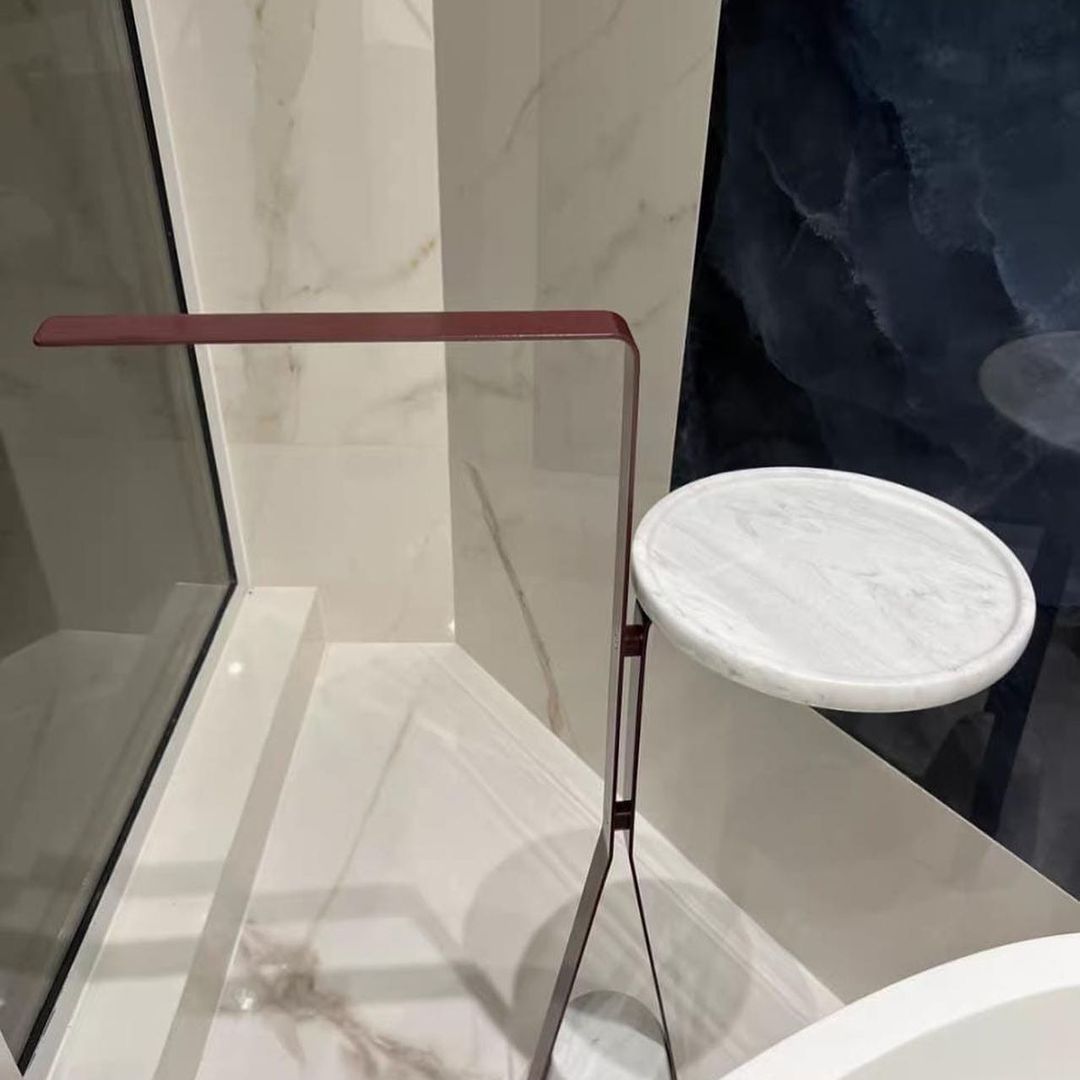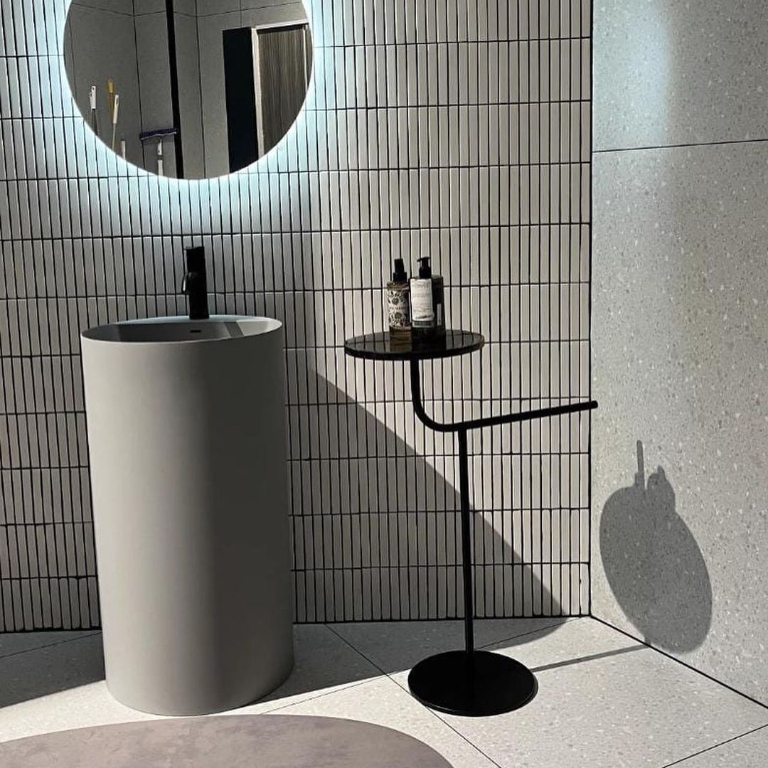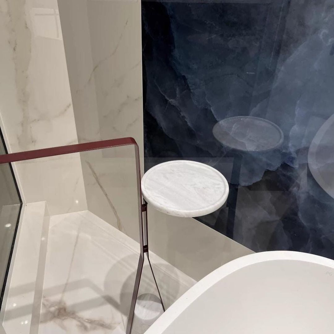 Изящный дизайнерский столик Monsterior Shop! Стильное и красивое решение для роскошной ванной комнаты. Нержавеющая сталь со специальным покрытием, натуральным мрамор – белый или черный, на ваш выбор.