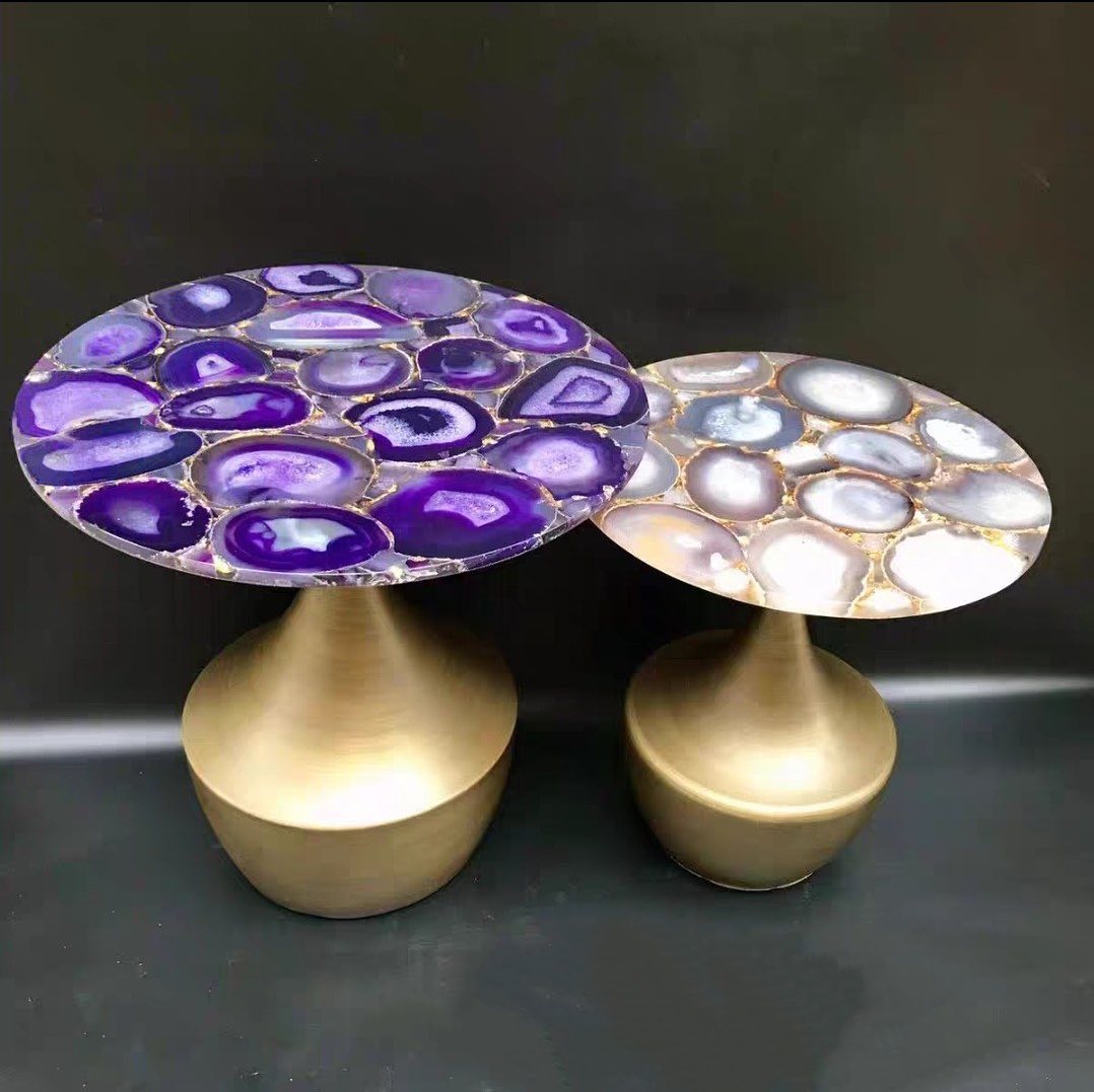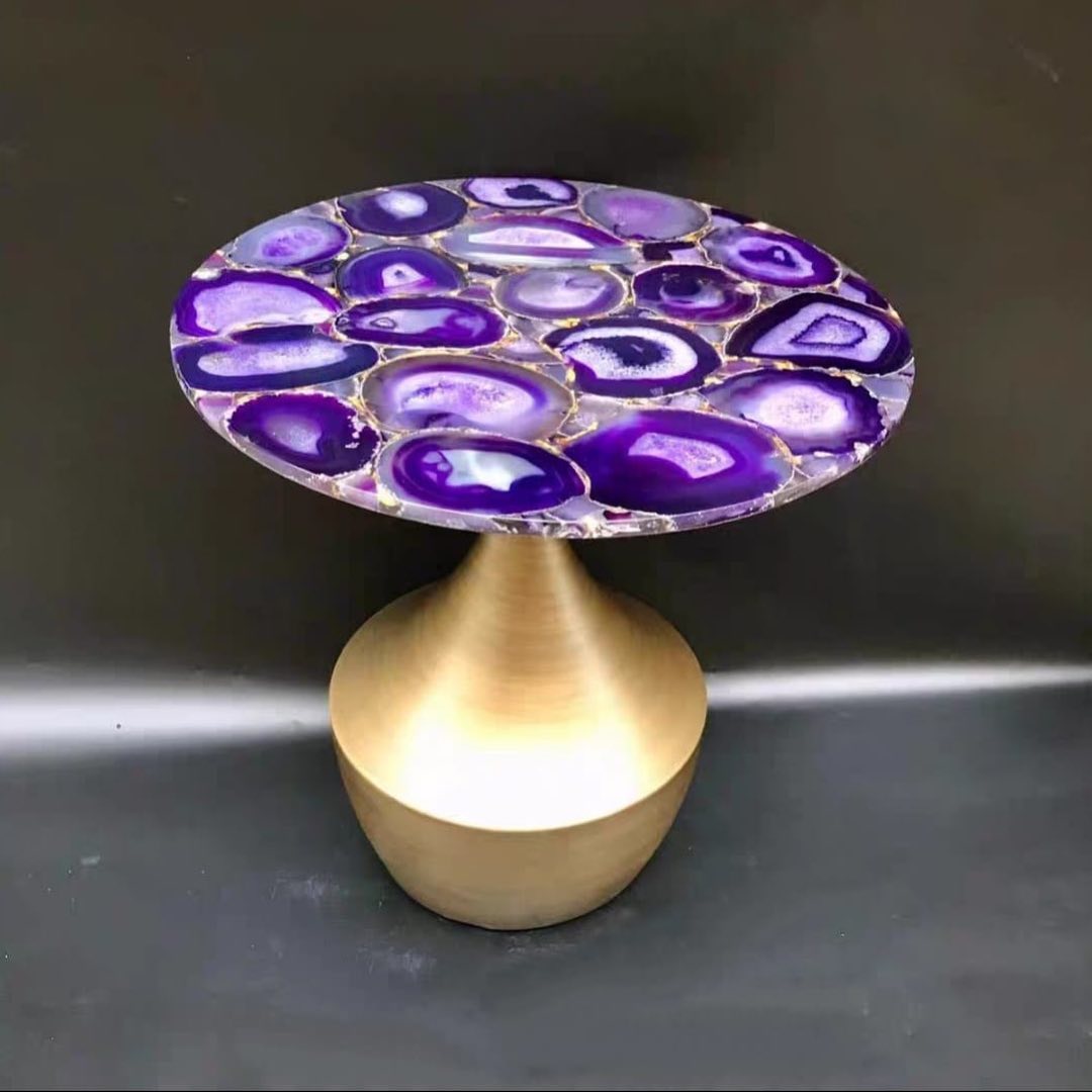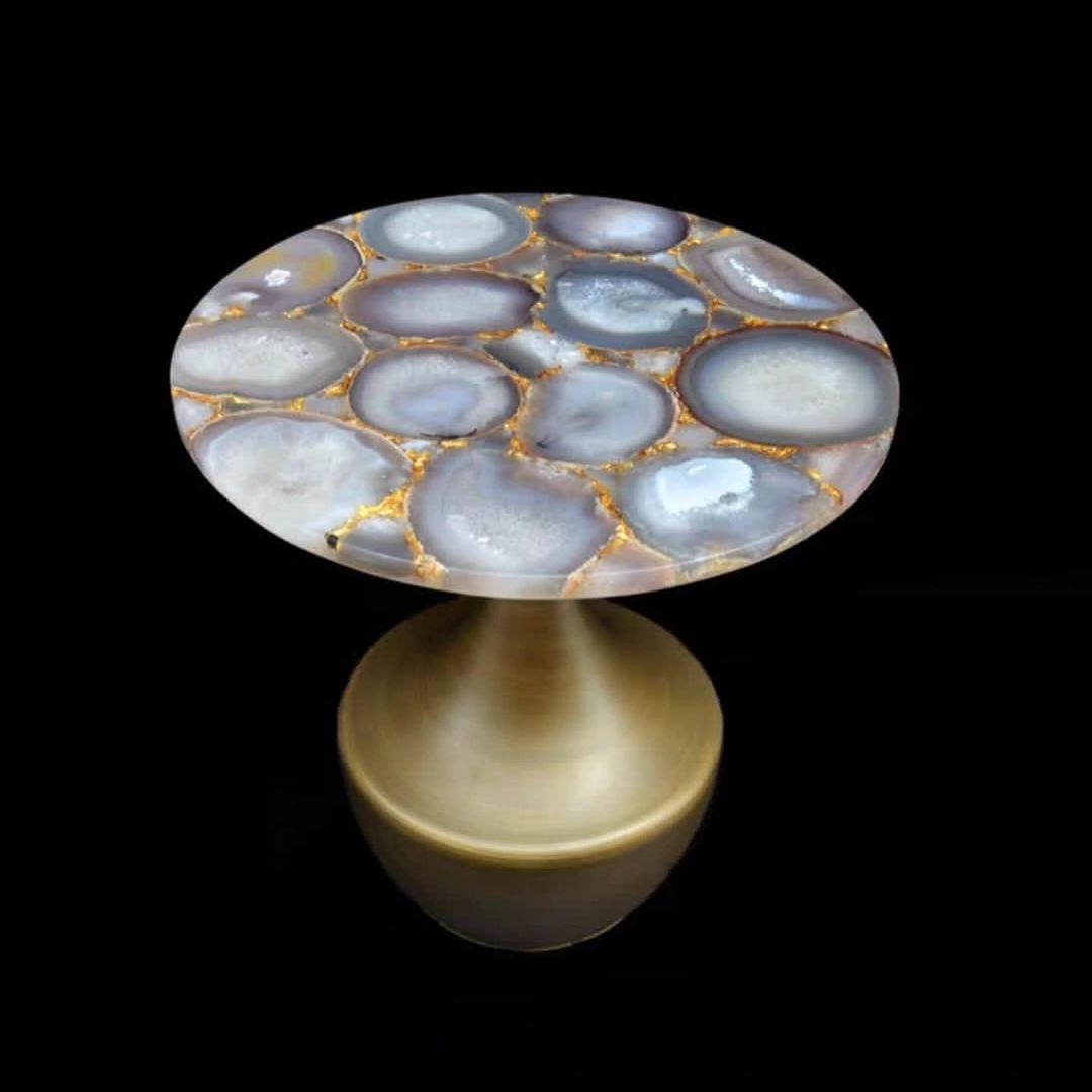Очаровательный дизайнерский приставной/журнальный столик Monsterior Gems! Отличный выбор для современного стильного и яркого интерьера. Натуральный агат, благородная латунь.