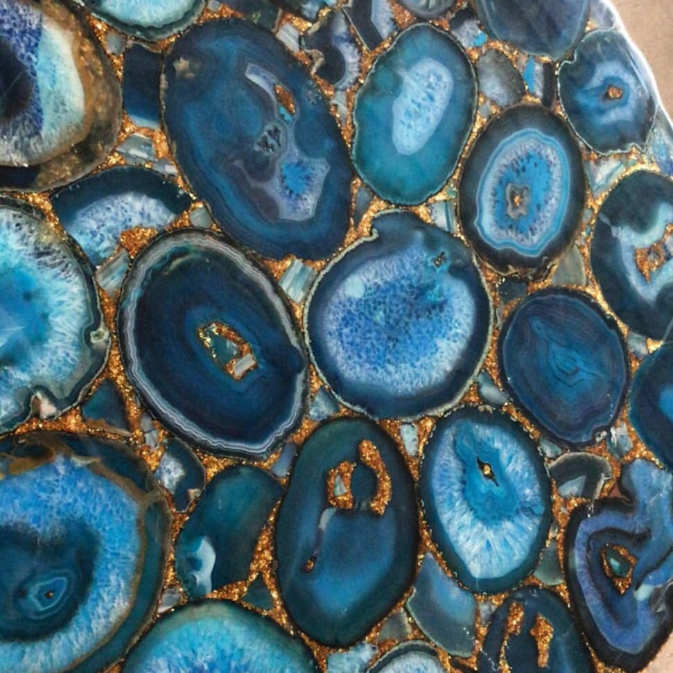 Прекрасный приставной/журнальный столик Monsterior Gems со столешницей из натурального голубого агата. Роскошное подстолье из благородной латуни. Красота самоцвета, небесное разнообразие оттенков голубого, узоры, созданные самой природой, душа камня – в вашем интерьере!