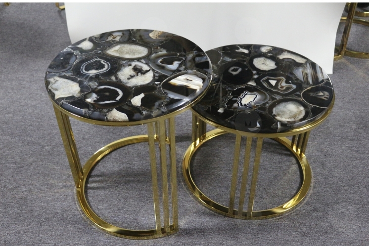 Комплект парных столиков из чёрного агата, необычный вариант side table.