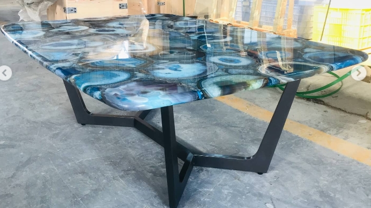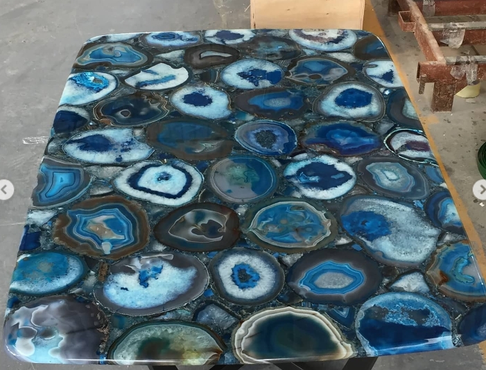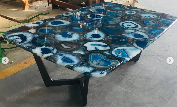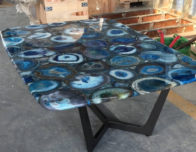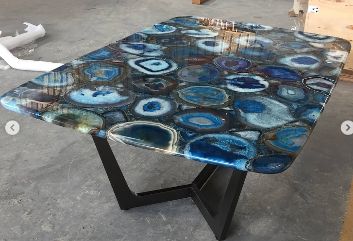 Роскошный обеденный стол из отборного голубого агата Monsterior.