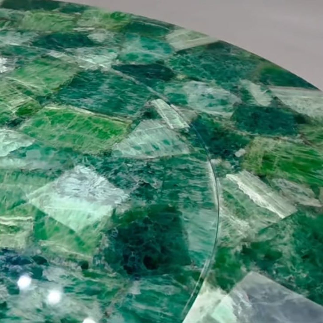 Роскошный обеденный стол Monsterior Gems отлично впишется в современный, стильный интерьер. Очаровательная столешница из отборного флюорита самых изысканных оттенков, с комфортным и беззвучным вращением центральной части.